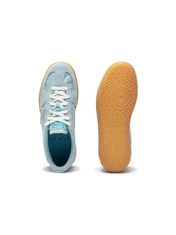 Освежающий небесно-голубой цвет делает эти кроссовки настоящей находкой для тех, кто хочет выделиться. Вдохновленные ретро-стилем 80-х, Puma Palermo получили новый облик в мягкой пастельной расцветке, которая идеально сочетается с белыми и карамельными деталями.