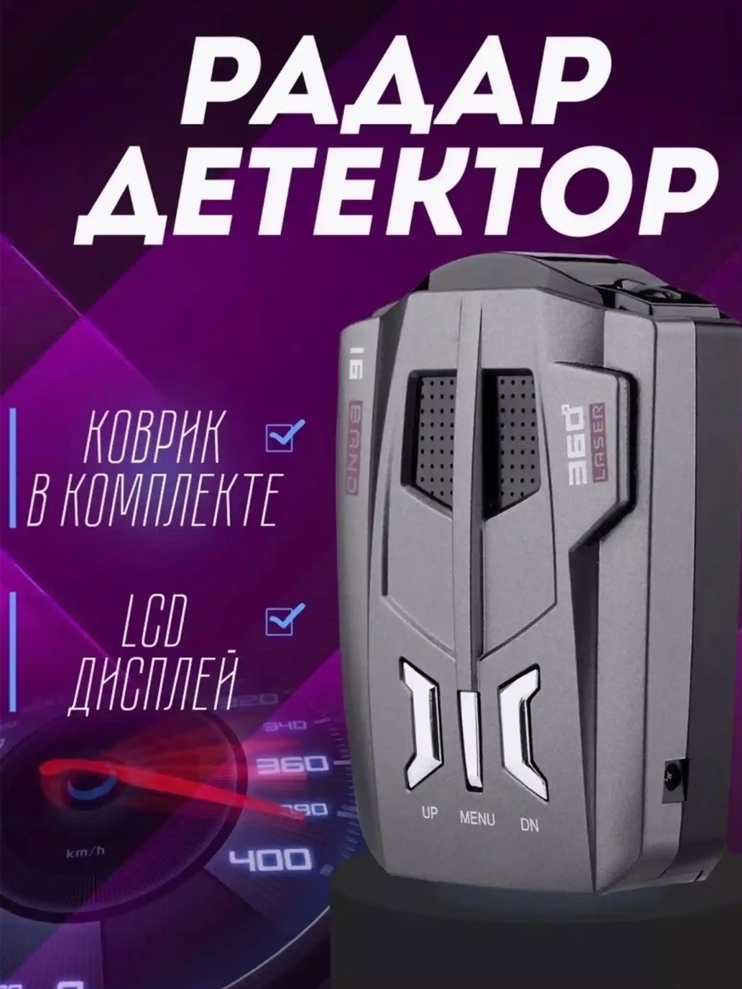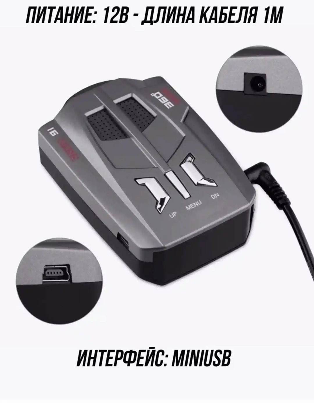 Радар-детектор – специальный прибор, который по радиосигналу засекает полицейские радары, измеряющие скорость движения автомобиля. Сразу после фиксации радара он предупреждает водителя звуковым или визуальным сообщением. Радар-детектор оповещает о приближении полицейских устройств достаточно заблаговременно, еще до того, как авто въедет в зону контроля и нарушение будет зафиксировано. Антирадар для автомобиля с обнаружением диапазонов: X-BAND: 10.525 GHz +/- 100 MHz, обнаруживает на расстояние: 1500-2500 метров. К-BAND: 24.150 GHz +/- 175 MHz, обнаруживает на расстояние: 1200-2500 метров. Trfor Ipod К-BAND: 24.150 GHz +/- 175 MHz, обнаруживает на расстояние: 250-1200 метров. Ku-диапазона: 13.450 GHz +/- 125 MHz, обнаруживает на расстояние: 450-1500 метров. Ка-диапазона: 34.700 GHz +/- 1300 MHz, обнаруживает на расстояние: 800-1500 метров. Trfor Ipod Ка-диапазона: 33.400 GHz +/- 1300 MHz, обнаруживает на расстояние: 200-600 метров. Лазерный луч: 904 mn +/- 33 KMHz- VG-2: 11.150 GHz +/- 410 MHz. Отображение информации на LCD-дисплее. Режим работы: Город, Трасса. Расстояние определения радара: 250 – 2500 метров. Угол определения: 360°. Мощность: 12 Вт. Напряжение питания: DC 12 В / 1000 mA. Голосовое оповещение на Русском. Интерфейс: miniUSB / DC 3.5мм. Рабочая температура: от -10 до +40 С. Нескользящий коврик в комплекте. Запросы: антирадар, радар детектор для автомобиля, радар детектор для авто, авторадар детектор
