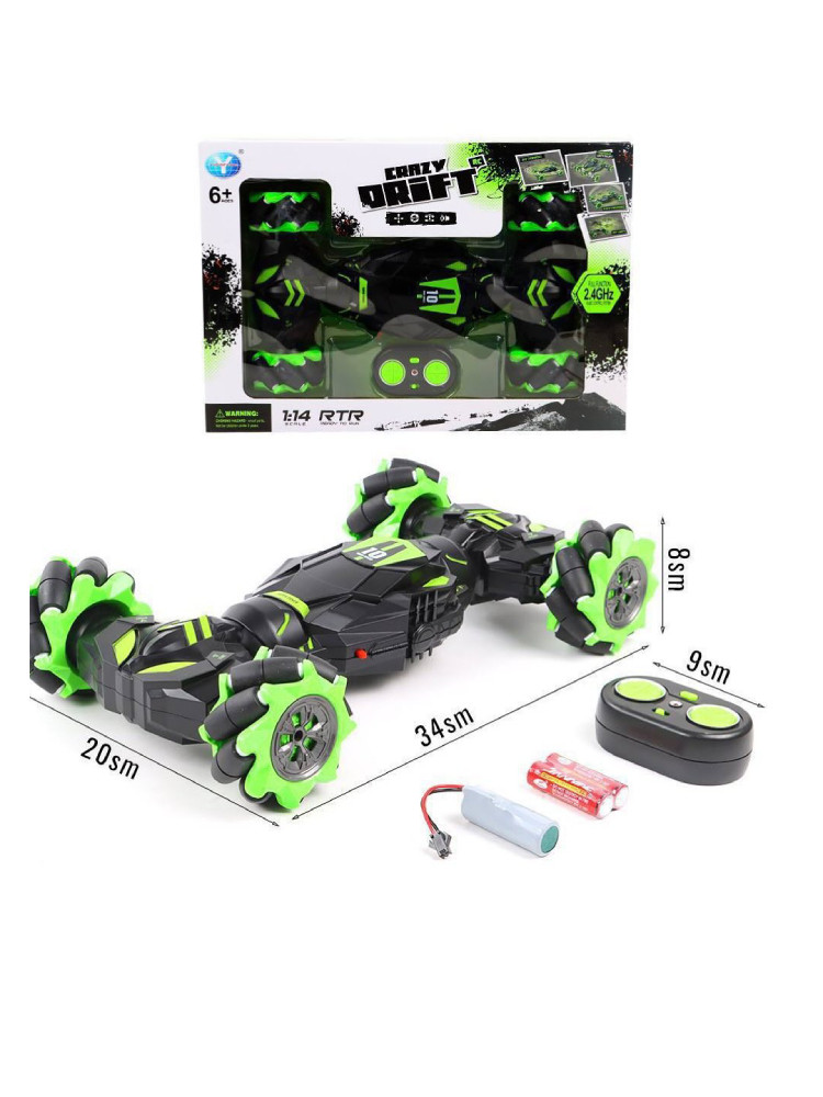Приготовьтесь к захватывающим трюкам и безудержному веселью с этой радиоуправляемой машинкой "Crazy Rift RC Car"! Эта уникальная модель, выполненная в ярком черно-зеленом цвете, оснащена инновационными колесами, позволяющими ей не только быстро ездить, но и выполнять невероятные вращения на 360 градусов и боковое скольжение. Благодаря полному приводу и надежному управлению на частоте 2.4 ГГц,