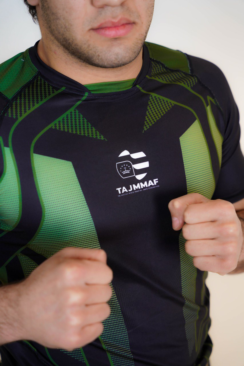 Профессиональный рашгард с короткими рукавами от Федерации Смешанных Единоборств Таджикистана (TAJMMAF), созданный для максимального комфорта и свободы движений во время тренировок и поединков. Благодаря облегающему крою, он плотно прилегает к телу, обеспечивая поддержку мышц и быстрое отведение влаги.