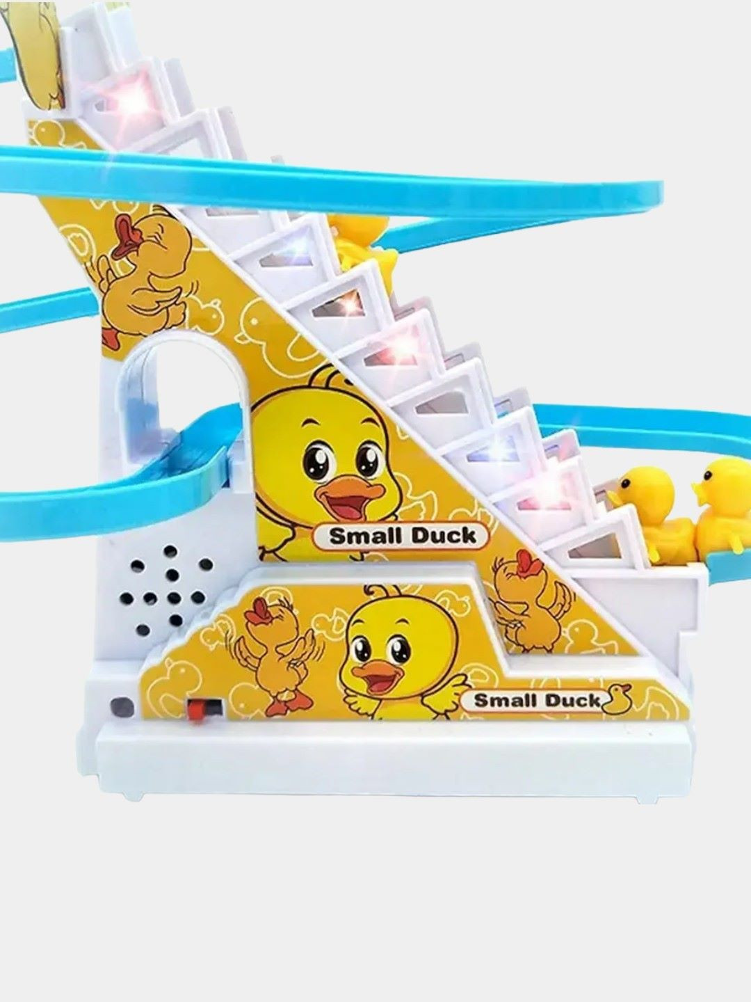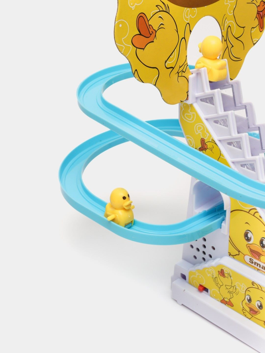 Горка с утятами - лучший подарок мальчику и девочке. Милые маленькие желтые утки забавно передвигаются по ступенькам и могут скользить по дорожкам. В эту игру можно играть часами при этом вовлечены в процесс оказываются все члены семьи: от мала до велика. Развивающая игрушка для малышей утки на горке с музыкой это идеальный подарок ребенку на День Рождения и другие праздники.