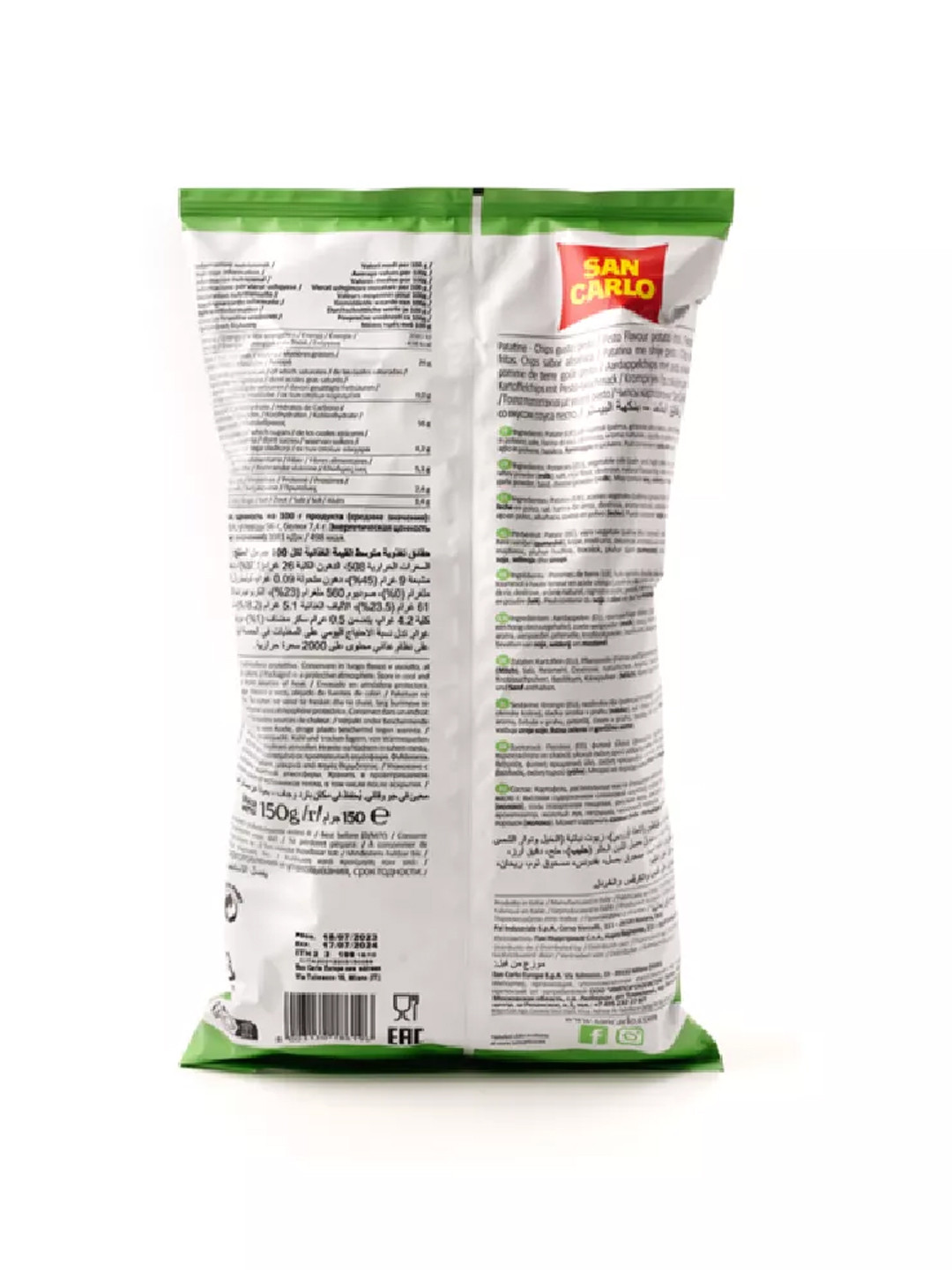 Погрузитесь в атмосферу солнечной Италии с хрустящими картофельными чипсами San Carlo со вкусом ароматного песто. Тонко нарезанные, золотисто-хрустящие ломтики пропитаны натуральными специями и насыщенным вкусом традиционного итальянского соуса. Упаковка украшена живописным пейзажем Портофино — настоящим воплощением "La Vita è Buona"!