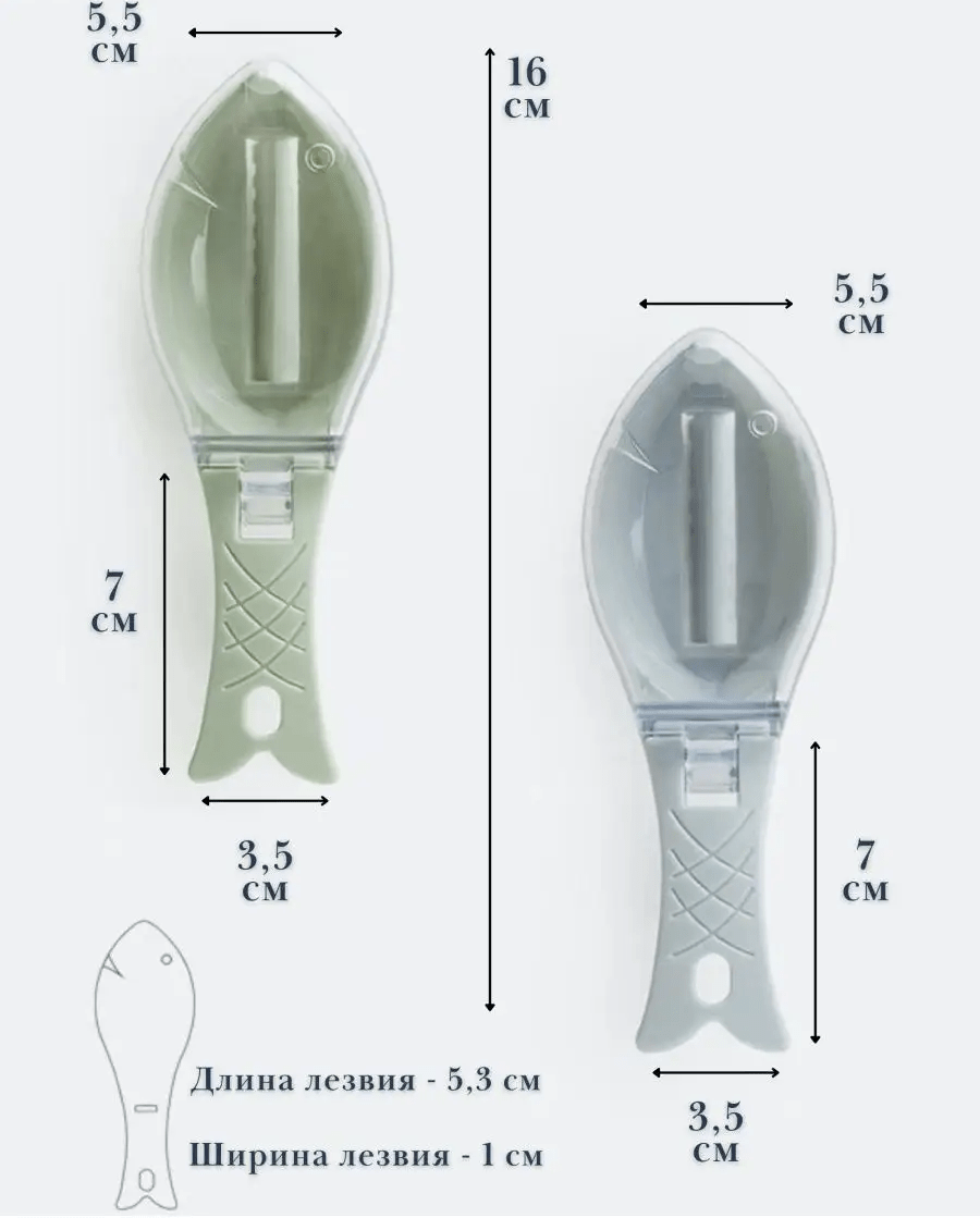 Рыбочистку с контейнером легко мыть в обычной воде или в посудомоечной машине. Кухонная принадлежность имеет компактный размер и идеально подойдет для любой кухни, дачи и отдыха на природе, также рыбочистку моожно взять с собой на рыбалку или на работу, если она связанна с приготовлением блюд из рыбы. Простоту использования и легкость в уходе рыбочистки оценит по достоинству как домохозяйка, так и опытный повар. Производится из высококачественног о прочного пластика.