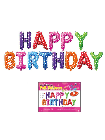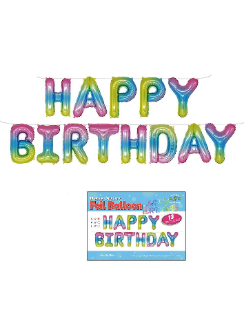 В комплекте представлены воздушные шары в виде букв, формирующих надпись "HAPPY BIRTHDAY". Они доступны в разных цветах Особенности: