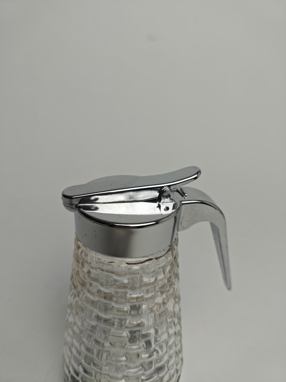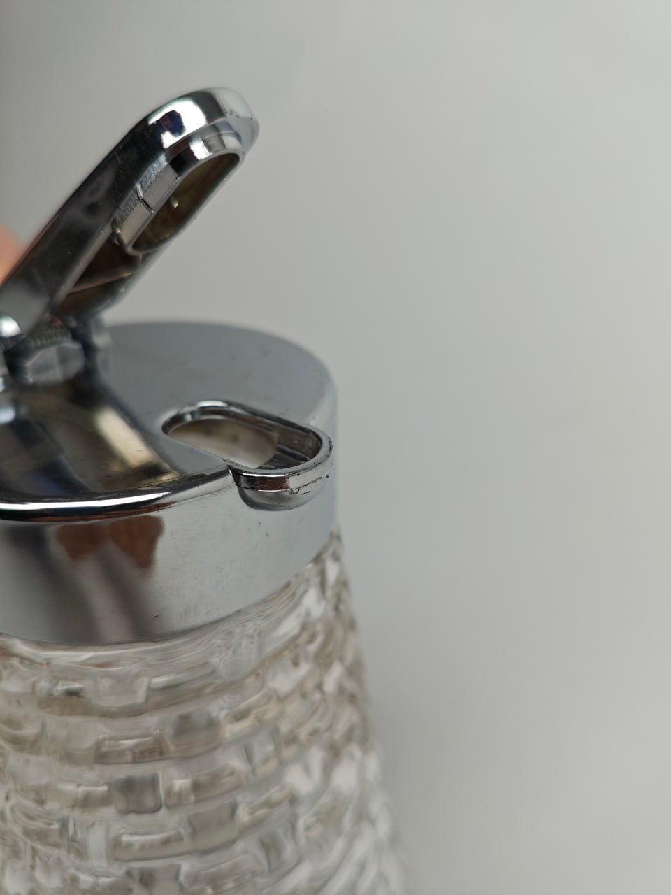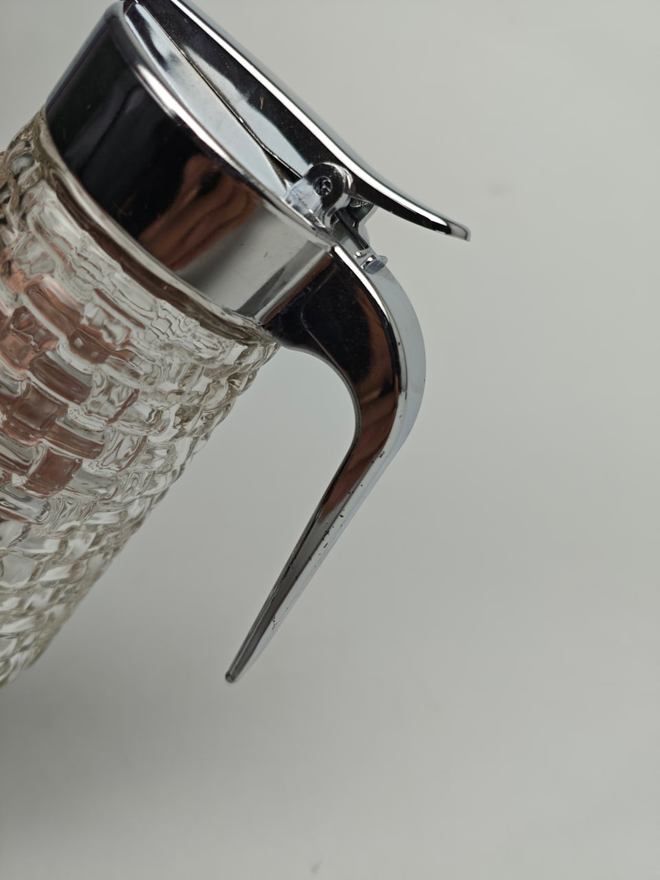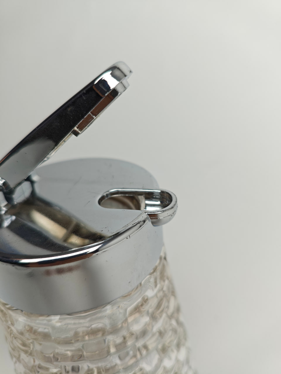 Эта изысканная сахарница сочетает в себе винтажный стиль и практичность. Её корпус выполнен из рифлёного стекла с узором, напоминающим плетение, что придаёт изделию элегантный и классический вид. Металлическая крышка с хромированным покрытием оснащена удобным рычажным механизмом, позволяющим легко открывать и закрывать ёмкость одной рукой. Благодаря прочной конструкции и стильному дизайну, такая сахарница станет прекрасным дополнением к сервировке стола, добавив нотку ретро-стиля и утончённости.