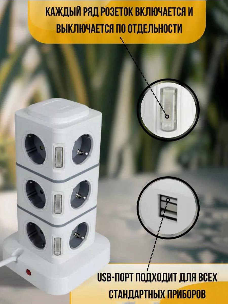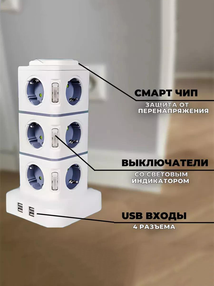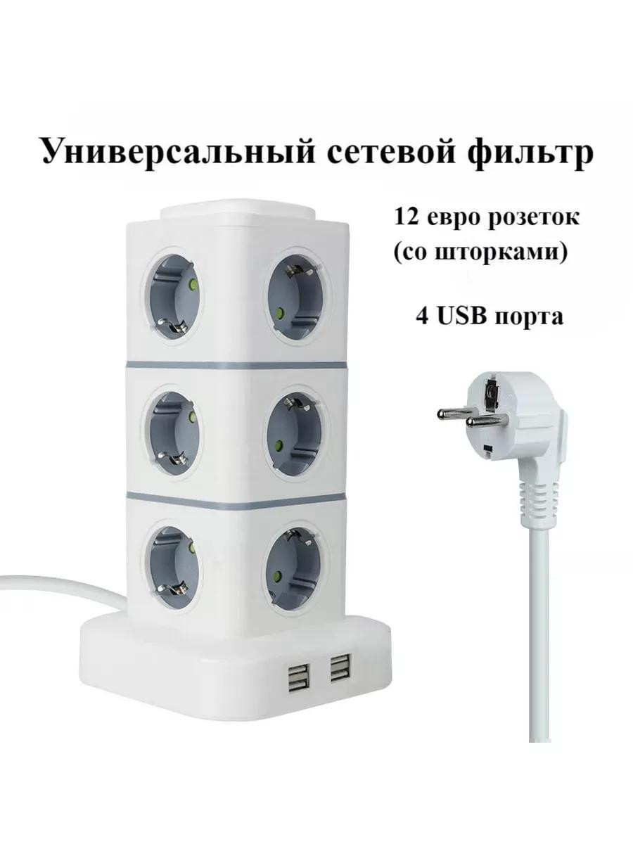 Сетевой фильтр « Башня » с 12 розетками и 4 USB-портами