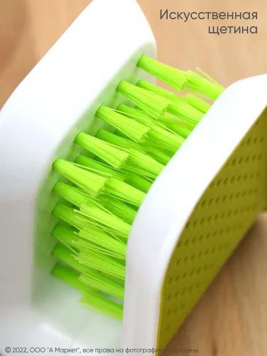 Щетка для столовых приборов идеально очистит ножи, вилки и ложки даже от засохших загрязнений. Щетинки средней жесткости удалят остатки пищи даже между зубчиками вилки. Удобная форма аксессуара позволит ускорить процесс. Изделие выполнено из безопасного пластика, щетина - из искусственного материала. Размеры: 7,5х8х5 см.