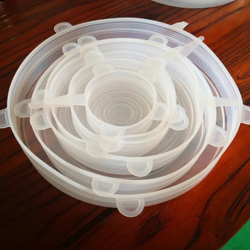 Крышки силиконовые растягивающиеся набор -практичный и универсальный атрибут на каждой кухне. Подходят силиконовые крышки для кастрюли, сковороды, банок, мисок, консервных банок, их можно надевать прямо на разрезанные фрукты или овощи (арбузы, ананасы, тыкву). Растягивающиеся силиконовые крышки подойдут для пищевых контейнеров разной формы (круглые, квадратные, прямоугольные, нестандартные) и диаметра (от 5 до 28 см). Прочный и долговечный пищевой силикон очень эластичный, поэтому герметично прилегает к посуде, надолго сохраняя свежесть, полезные качества продуктов и исключая возможность случайного проливания содержимого. Могут использоваться в морозильной камере (до -30 градусов), микроволновой печи (до +230 градусов), посудомоечной машине. Крышки чехлы отлично тянутся. Силиконовые крышки прозрачные и имеют круглую форму.