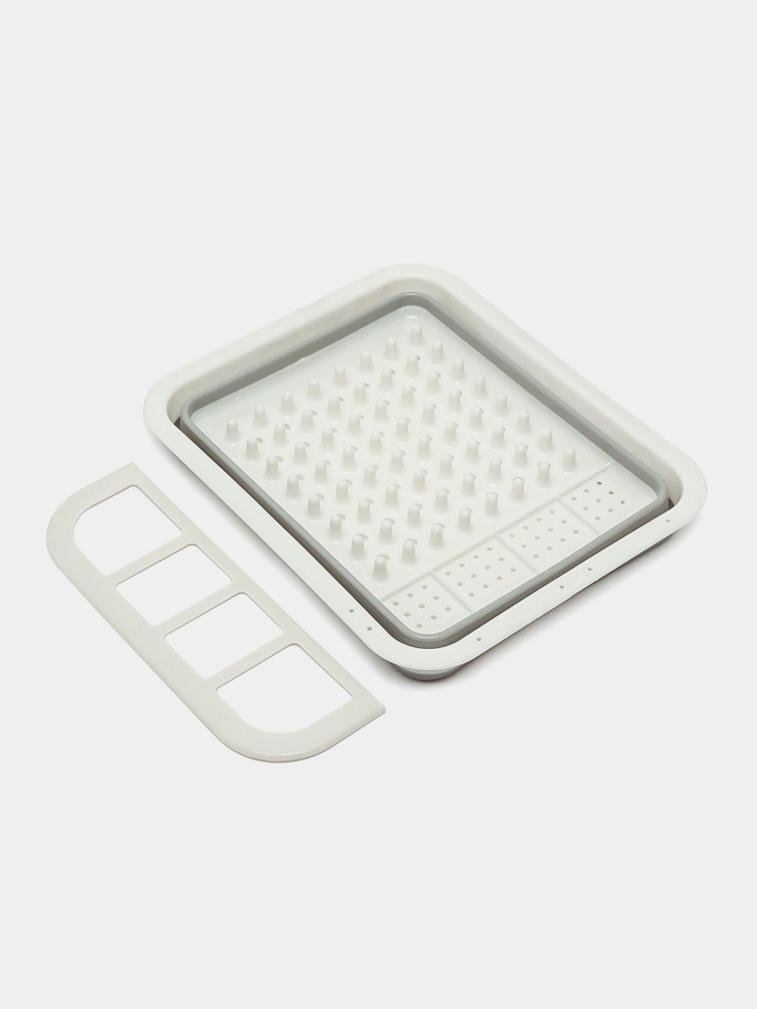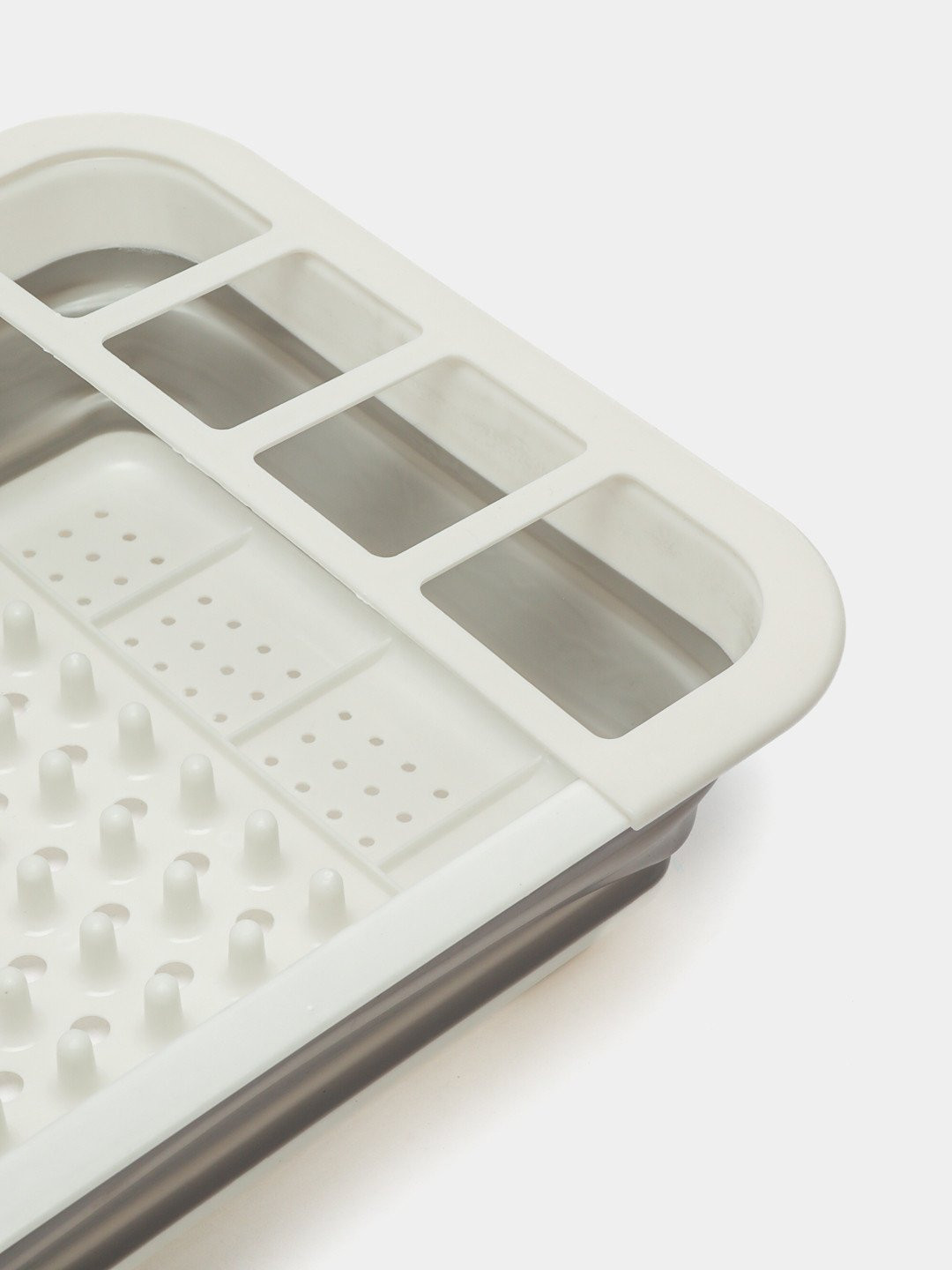 Сушилка для посуды отлично подойдет для любой малогабаритной кухни. Ячейки-подставки для столовых приборов, а также разделители для тарелок позволят разместить посуду для сушки. После использования сушилки вы можете легко ее сложить и убрать в шкаф, освободив место на кухне.