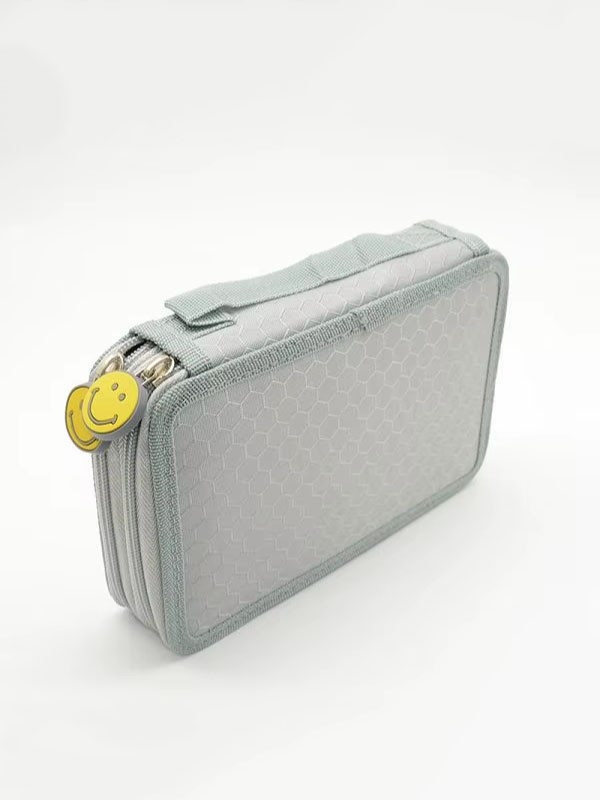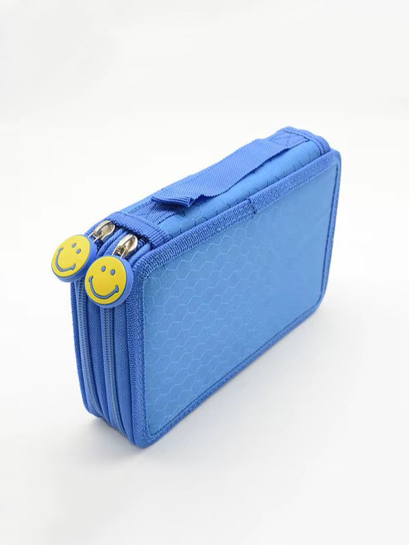 Удобный и вместительный школьный пенал с ярким дизайном, рассчитанный на хранение до 60 канцелярских предметов. Имеет три независимых отделения на молнии, прочные держатели и эластичные петли для фиксации карандашей, ручек, линейки и ластика. Выполнен из износостойкого текстиля, легко чистится и долго сохраняет форму. Украшен забавными бегунками в виде смайликов.