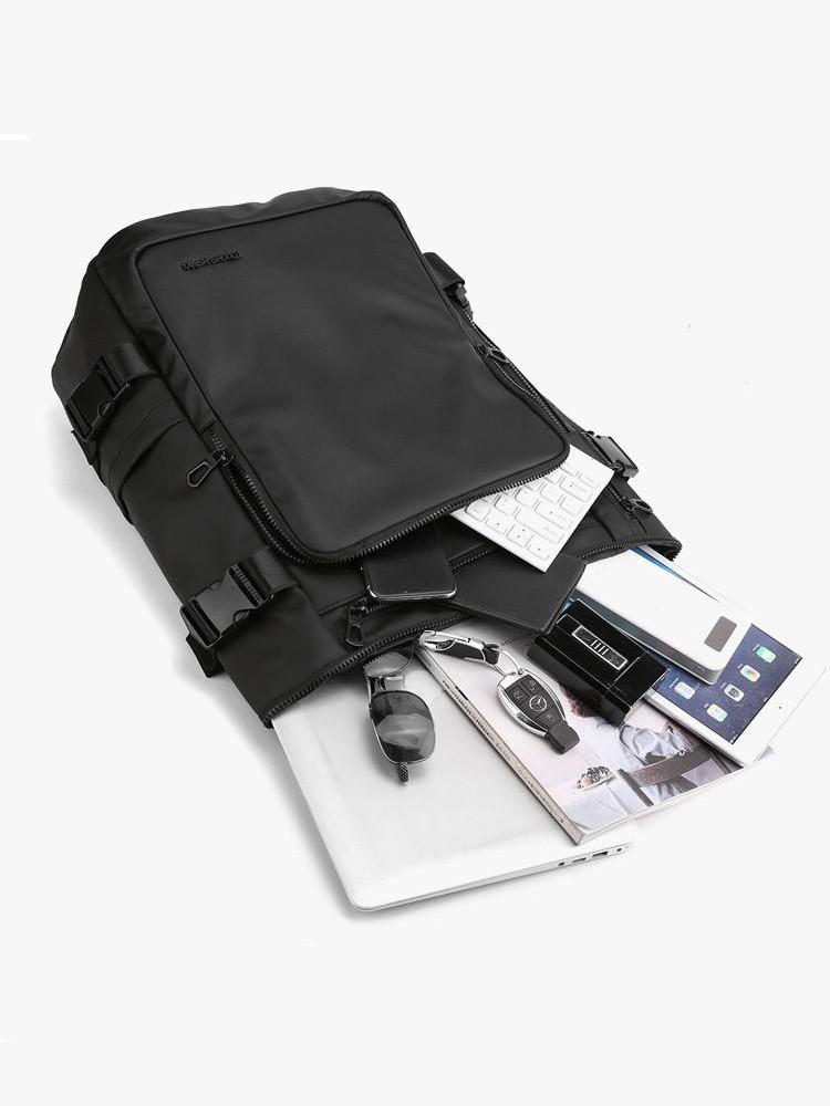 Дизайн: Рюкзак имеет современный и аккуратный вид с несколькими отделениями и молниями. Основное отделение закрывается на двойную молнию, а передний карман и боковые карманы предоставляют дополнительное место для хранения мелочей.