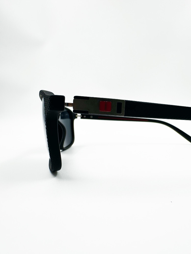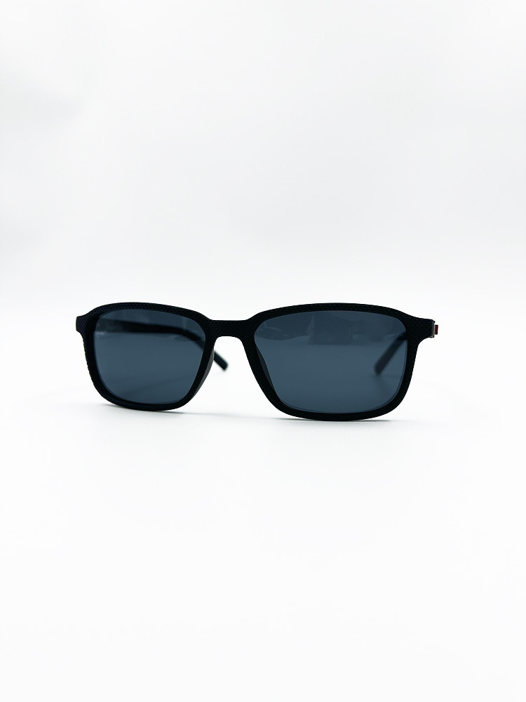 Современные очки с прямоугольной оправой в чёрном цвете — идеальный аксессуар для активного образа жизни. Стильный спортивный дизайн, лёгкий и прочный корпус, а также поляризационные линзы обеспечивают защиту от ультрафиолета и снижают блики от солнца.