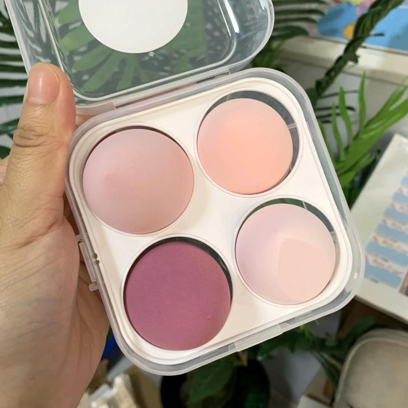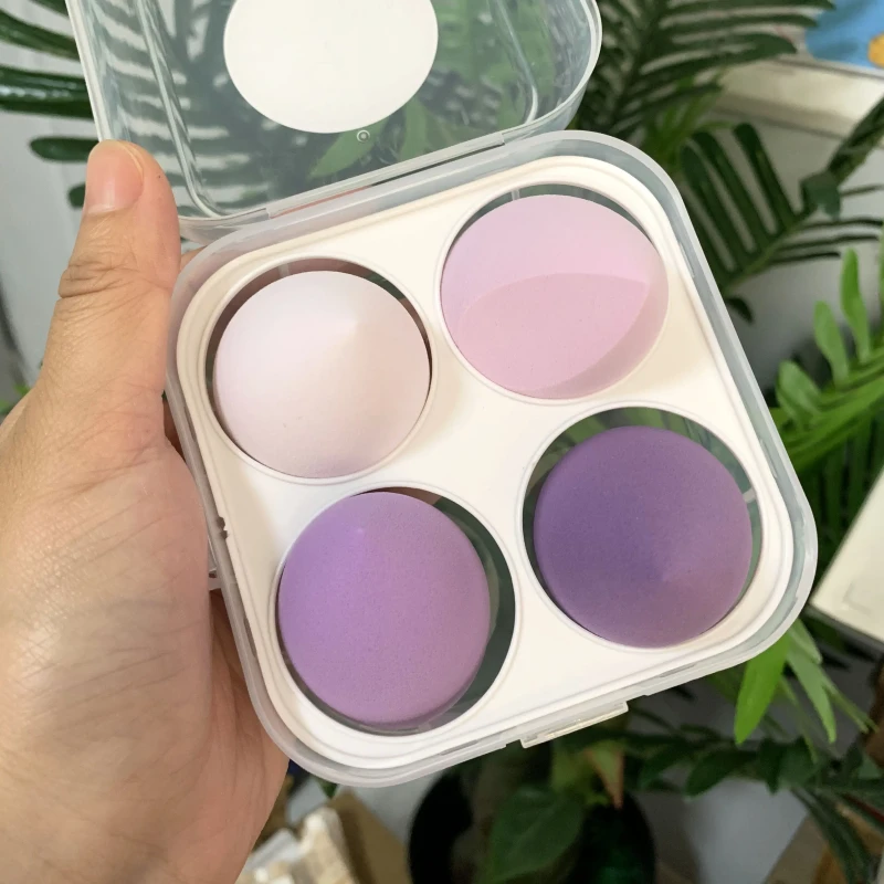Спонж для макияжа — это универсальный инструмент, используемый для нанесения и растушевки различных косметических продуктов, таких как тональные основы, консилеры и кремовые румяна. Данная упаковка включает четыре спонжа в компактном контейнере, что удобно для хранения и транспортировки. Спонжи выполнены в разных оттенках фиолетового и светло-розового цветов. Их округлая форма помогает равномерно наносить косметику, обеспечивая безупречный результат без разводов и пятен. Спонжи обладают мягкой текстурой, которая позволяет аккуратно растушевывать средства, минимизируя нагрузку на кожу.
