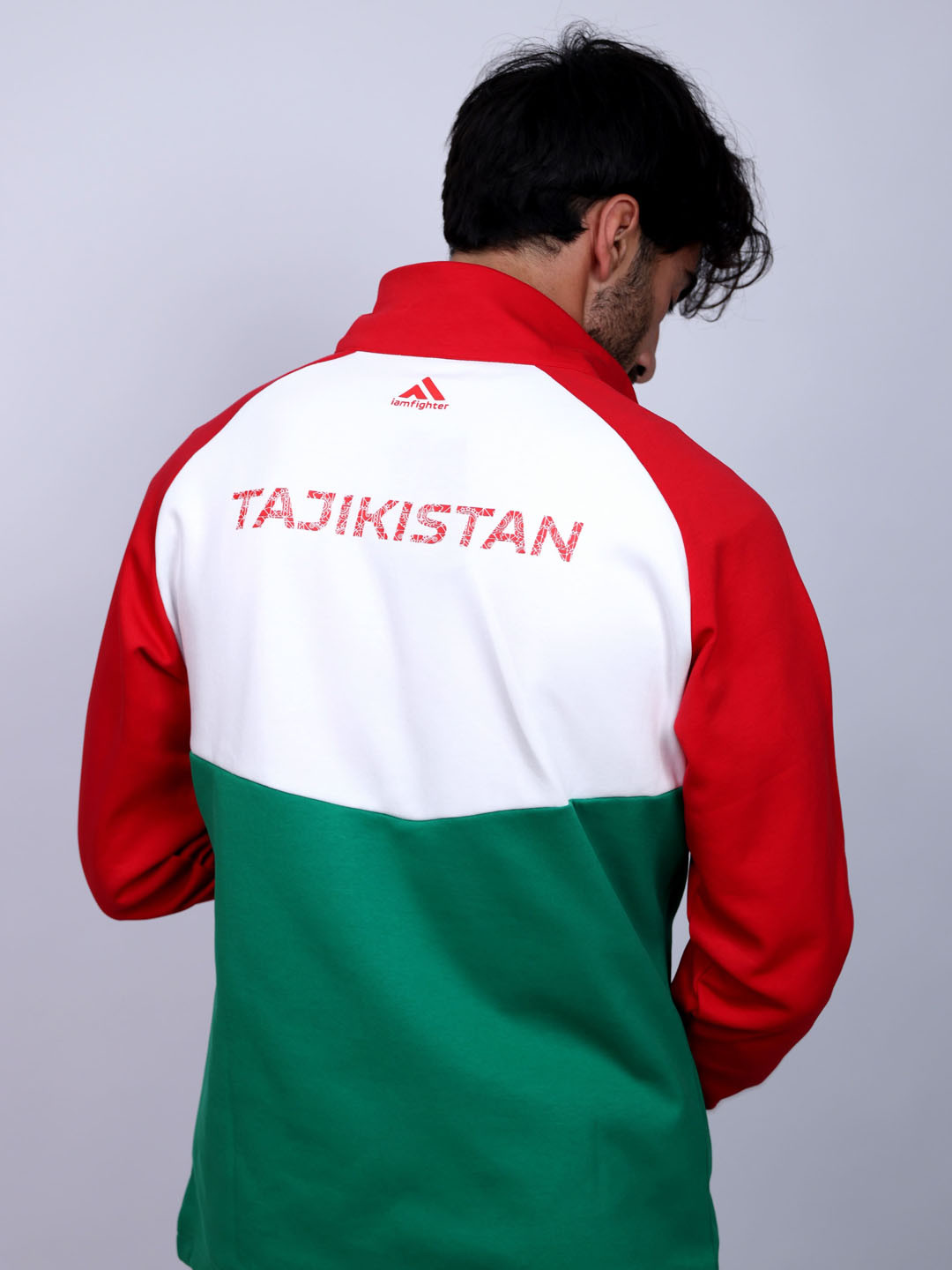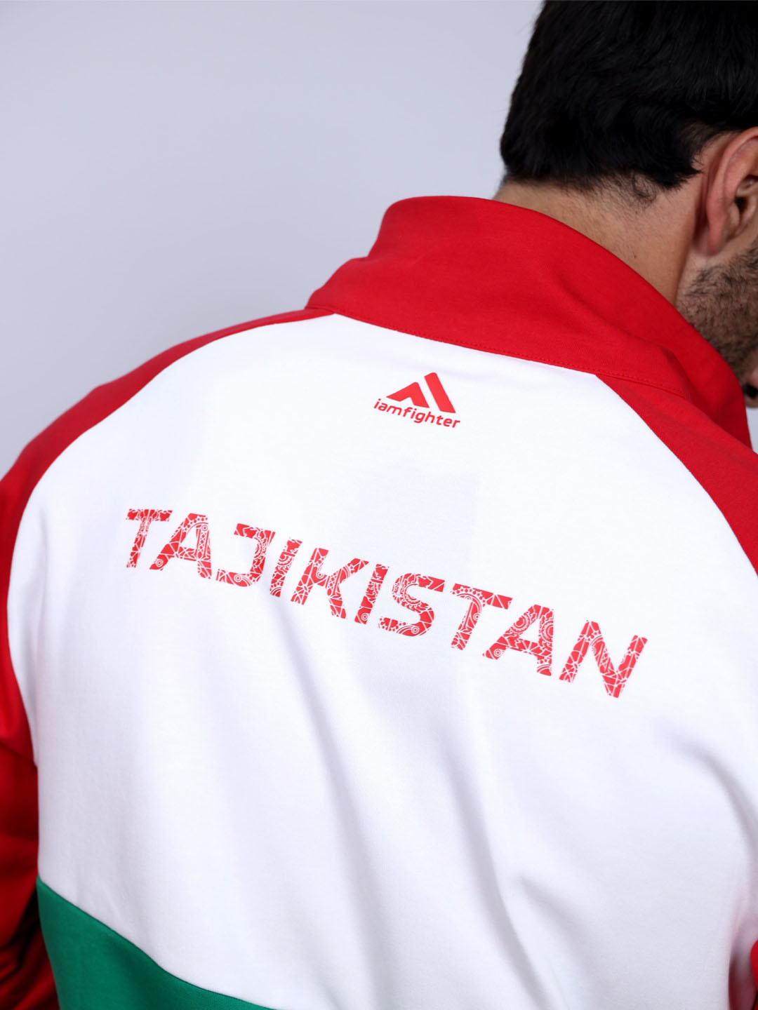 Спортивный костюм, выполненный в национальных цветах флага Таджикистана. Подходит для тренировок, активного отдыха и повседневной носки.