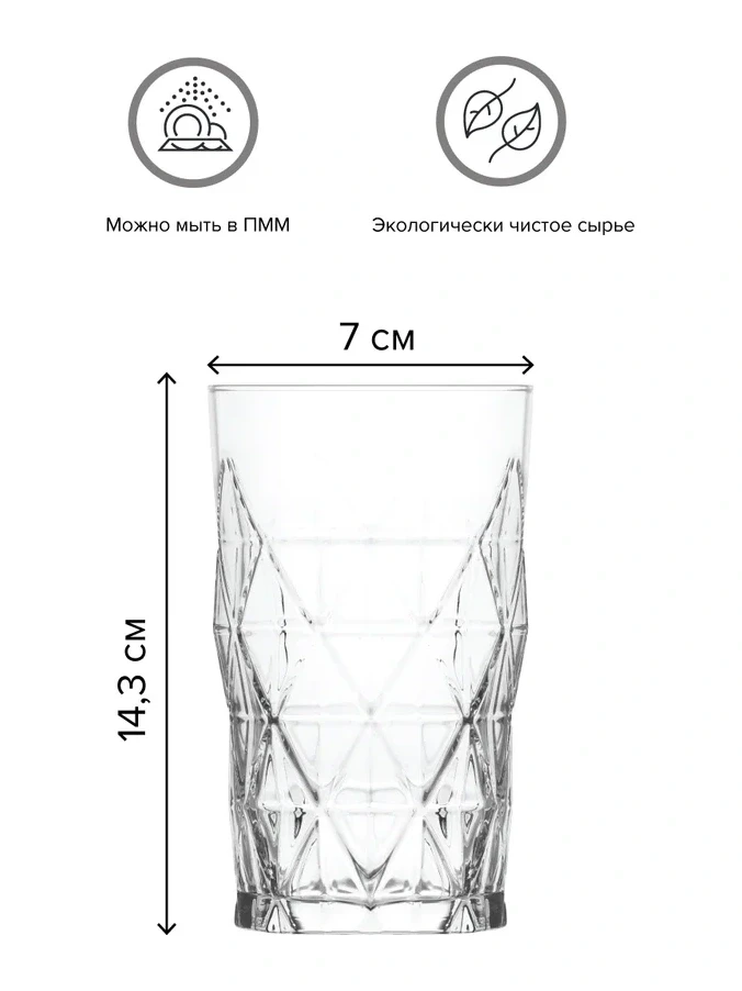 Эти стильные стаканы из серии Keops с объемом 460 мл выполнены из прочного и качественного стекла с ярко выраженной геометрической текстурой, которая придает им уникальный и элегантный вид. Эти стаканы идеально подойдут для соков, коктейлей и других напитков, создавая атмосферу стиля и утонченности. Они имеют устойчивое основание и могут использоваться для повседневного использования или специальных случаев. Легко моются в посудомоечной машине.