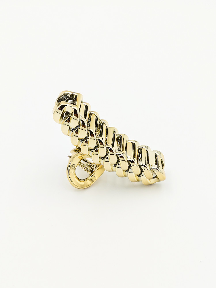 Элегантный зажим для волос с оригинальным дизайном в форме массивной цепи. Подходит для повседневных и вечерних причесок, надежно фиксирует волосы, создавая аккуратный и стильный образ.Современный дизайн – эффектная форма цепи дополняет любой образ.