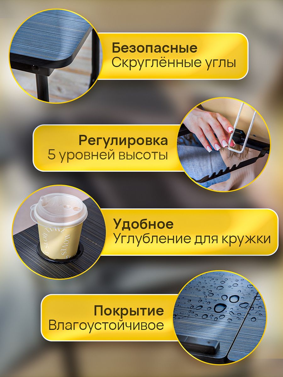 Столик для ноутбука Большой обеспечивает комфортные условия пользования гаджетами. В результате длительной работы в сидячем положении за компьютером затекает шея и возрастает нагрузка на спину. Подставка для ноутбука позволяет принять удобную позу и при необходимости ее поменять. Устройство может быть использовано как на кровати, так и на диване, на полу или на стуле. Регулируемый угол наклона позволяет настроить держатель под нужные параметры и работать или читать книгу с удобной высотой. Держатель оснащен фиксатором для предотвращения падения ноутбука, специальной нишей для стакана или канцелярии. Подставка под монитор имеет регулируемые устойчивые ножки. Многофункциональный прикроватный игровой стол позволяет работать в любой позе, в любом месте и в любое время. Это позволяет работать более эффективно и быстро, что экономит время и повышает производительность. Рабочий стол полностью складной, и с ним легко и быстро перемещаться с компьютером по дому, на улице или в любом другом месте. Подставка для ноутбука может использоваться не только для работы на компьютере, но и для чтения книг, просмотра любимых сериалов, а также как столик для завтрака в постель. Кроватный столик для ноутбука полезный подарок на день рождения или новоселье сестре, коллеге или учителю. Преподнесите в подарок маме, любимой подруге или жене мини столик, чтобы выразить вашу любовь. Такой аксессуар станет отличным подарком и для мужчин. Удивите вашего мужа, парня, папу, брата, друга таким подарком в любой праздник. Особенно актуально это будет тем, кто работает удалённо и дистанционно. Самые практичные подарки для любого повода женщине или девушке вы найдёте в нашем магазине. Товары OQQI - всегда желанные подарки детям и родителям.