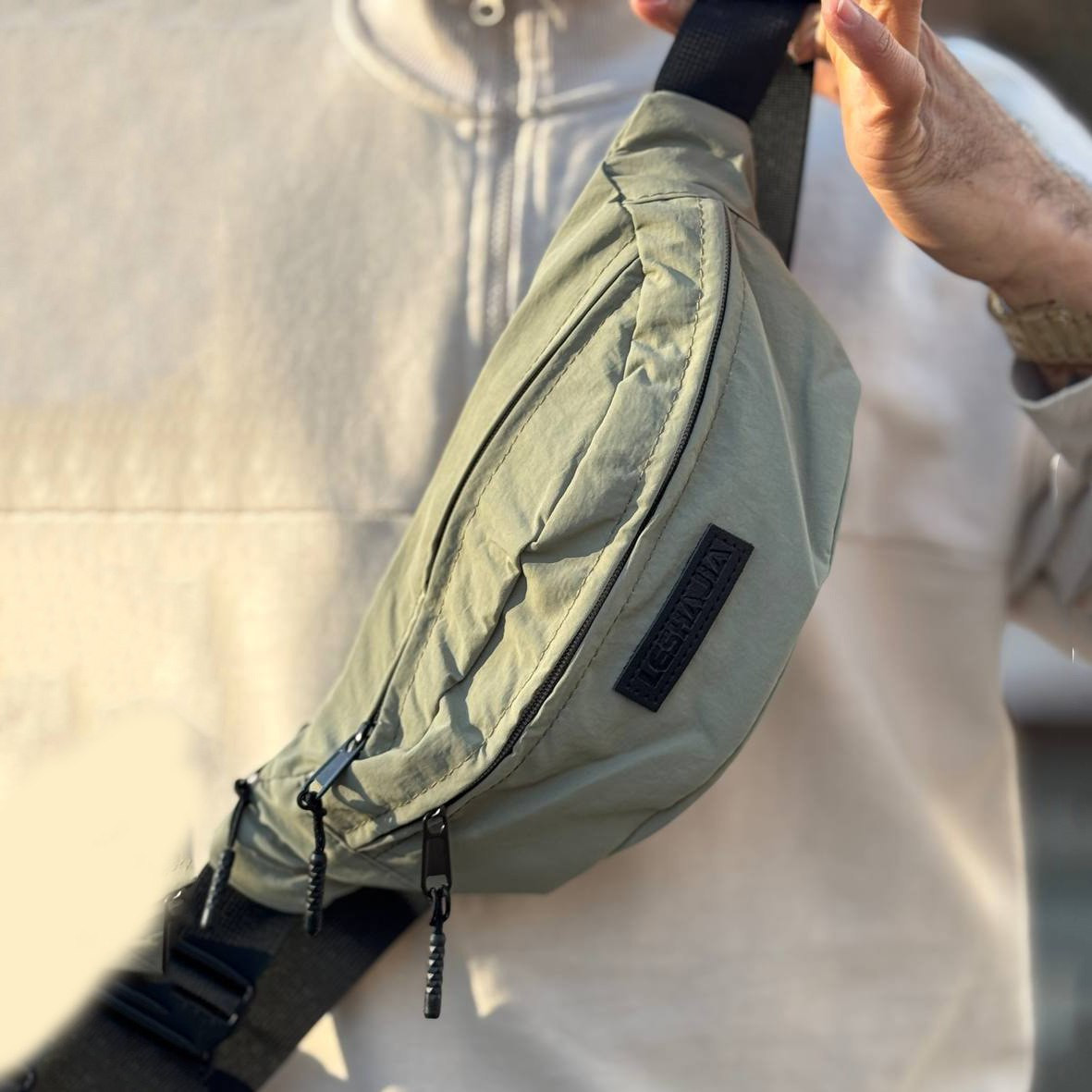 Элегантная поясная сумка светло-серого цвета с минималистичным дизайном. Выполнена из легкого и прочного материала, который устойчив к износу и подходит для активного использования. Сумка имеет основное отделение на молнии с удобными пуллерами для быстрого открытия, а также регулируемый ремень с надежной застежкой. Лаконичная нашивка добавляет стильный акцент. Эта сумка идеально подойдет для ежедневных прогулок, путешествий или спорта, гармонично дополняя повседневный образ.
