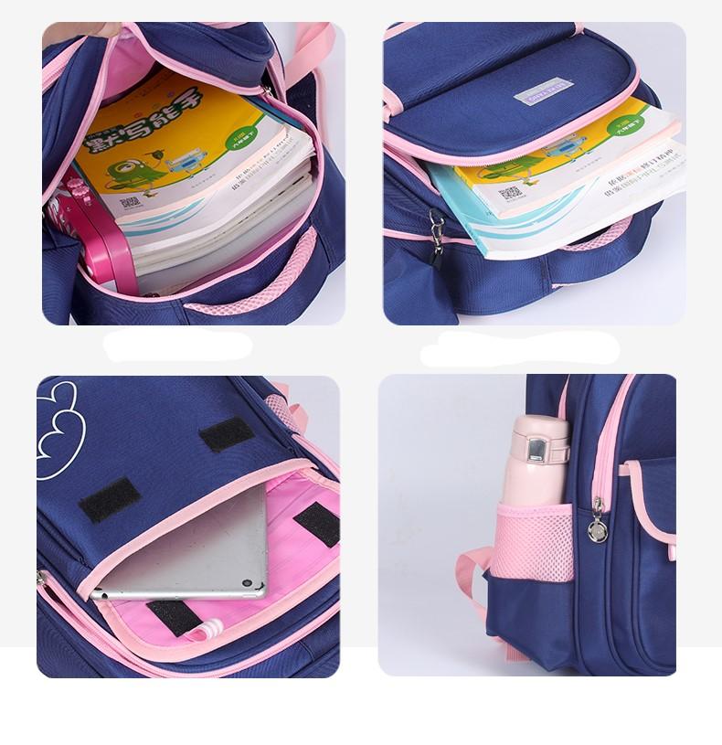 • Отделения: Вместительное основное отделение для книг, игрушек и других необходимых вещей, а также дополнительные карманы для мелочей.