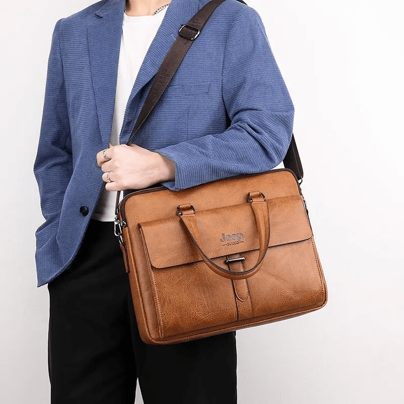 Эта стильная коричневая кожаная сумка с двумя ручками и съемным плечевым ремнем от бренда "Jeep BULUO" сочетает в себе высокое качество и элегантность.