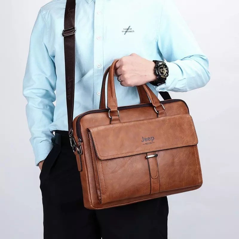 Дизайн: Сумка имеет передний клапан с пряжкой и логотипом "Jeep BULUO", придающий ей стильный и профессиональный вид.