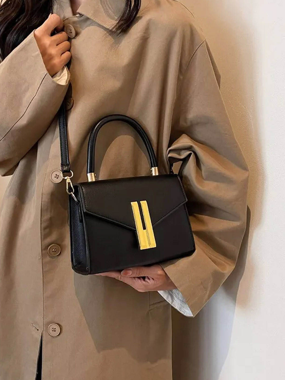 Декоративный элемент в виде металлической золотистой заклепки добавляет сумке индивидуальности и оригинальности, делая её заметной и запоминающейся. Назначение ремня сумки на плечо и руку делает её универсальной и подходящей для любых поводов – от повседневных прогулок до торжественных мероприятий.