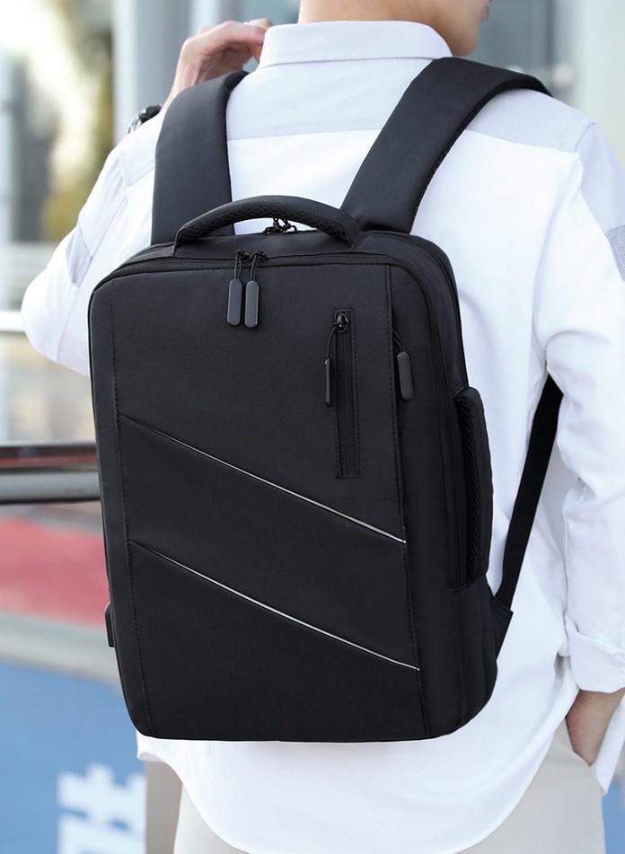 Этот элегантный черный рюкзак сочетает в себе современный дизайн и высокую функциональность, что делает его идеальным выбором для повседневного использования, учебы или работы.