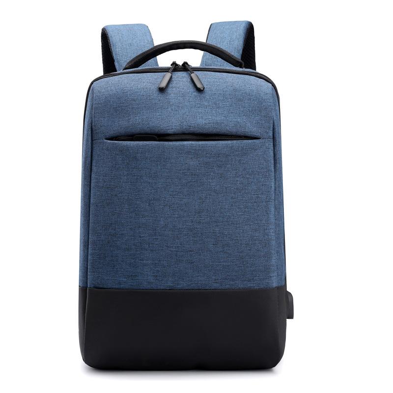 Дизайн: Рюкзак выполнен в синем цвете с черными акцентами, имеет прямоугольную форму с минималистичным дизайном. Основное отделение закрывается двойной молнией, а передний карман обеспечивает легкий доступ к необходимым вещам.