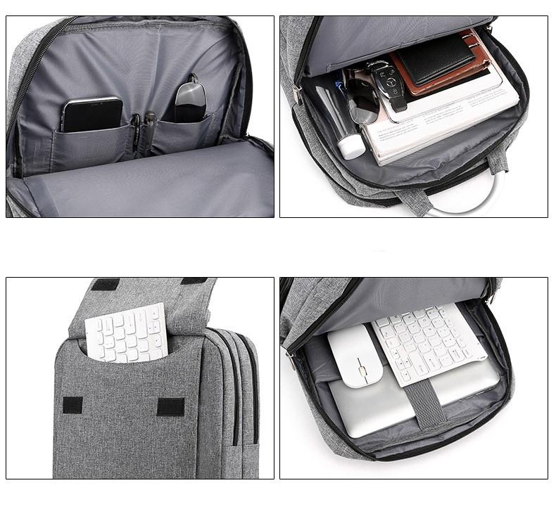 Отделения: Вместительное основное отделение для книг, ноутбука и других необходимых вещей, а также два боковых кармана на молнии для мелочей.