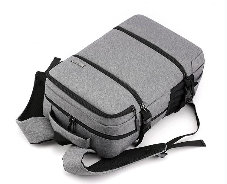 Дизайн: Серая основа с черными акцентами и молниями придает рюкзаку стильный и минималистичный вид. Прямоугольная форма с несколькими отделениями, включая большое основное отделение и передний карман на молнии.