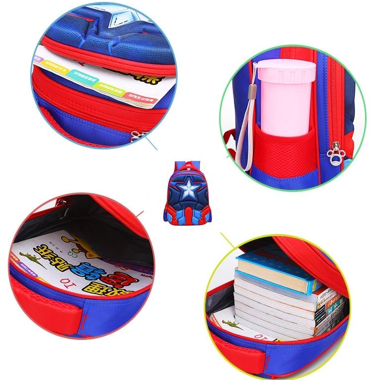 Дизайн: Рюкзак выполнен в красно-сине-белой цветовой гамме с большой белой звездой в центре синего фона, напоминающей щит Капитана Америки. Дизайн включает в себя мягкие секции, придающие ему трехмерный вид, напоминающий броню или костюм Капитана Америки. Лямки рюкзака красные с синими акцентами, что делает его ярким и привлекательным для поклонников супергероя.