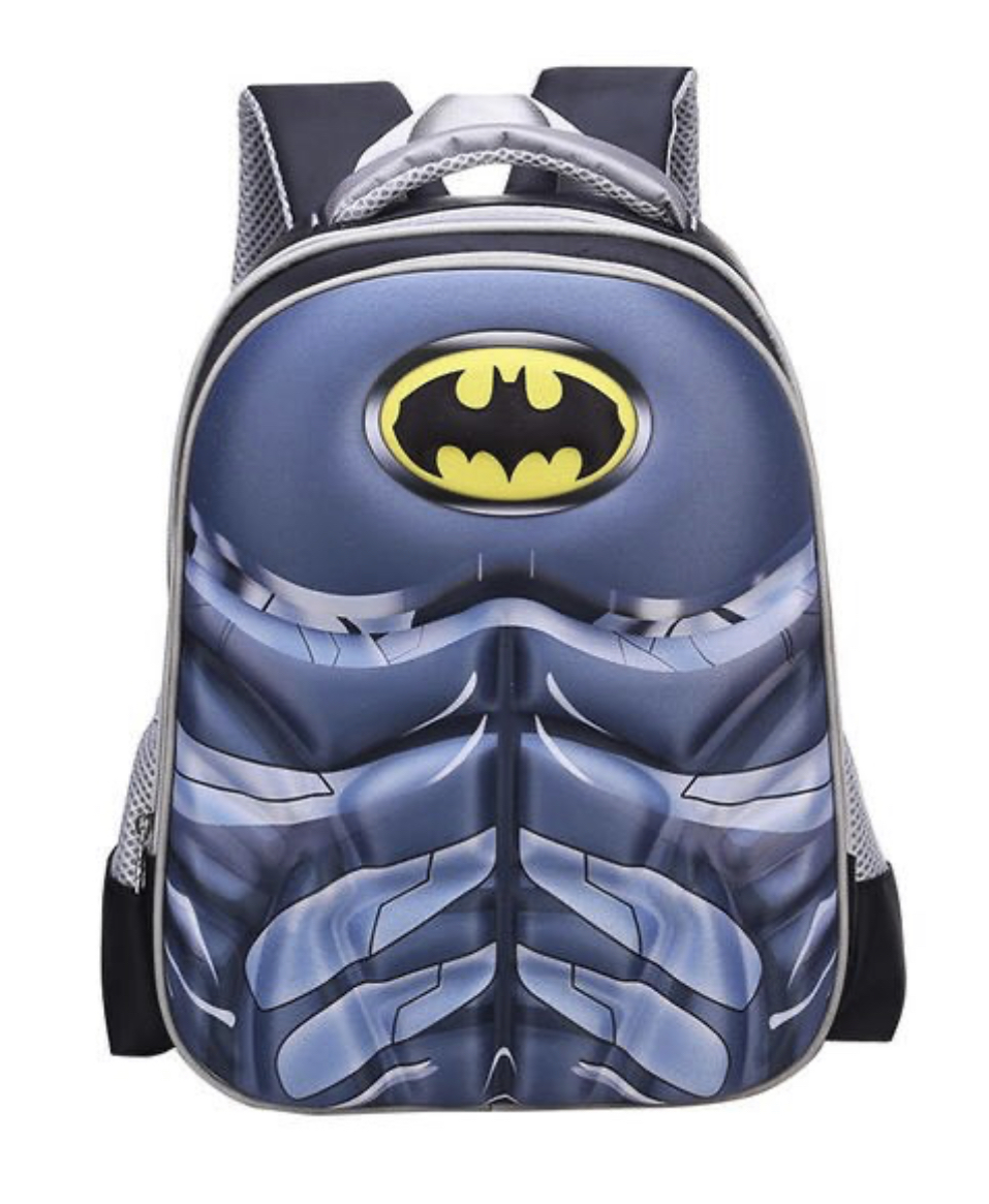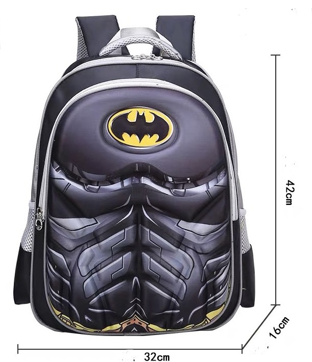 Дизайн: Рюкзак выполнен в тематике Бэтмена с изображением его костюма, включая мускулистый дизайн груди и культовый логотип Бэтмена в черно-желтых цветах на верхней части. Боковые карманы выполнены из сетчатого материала.