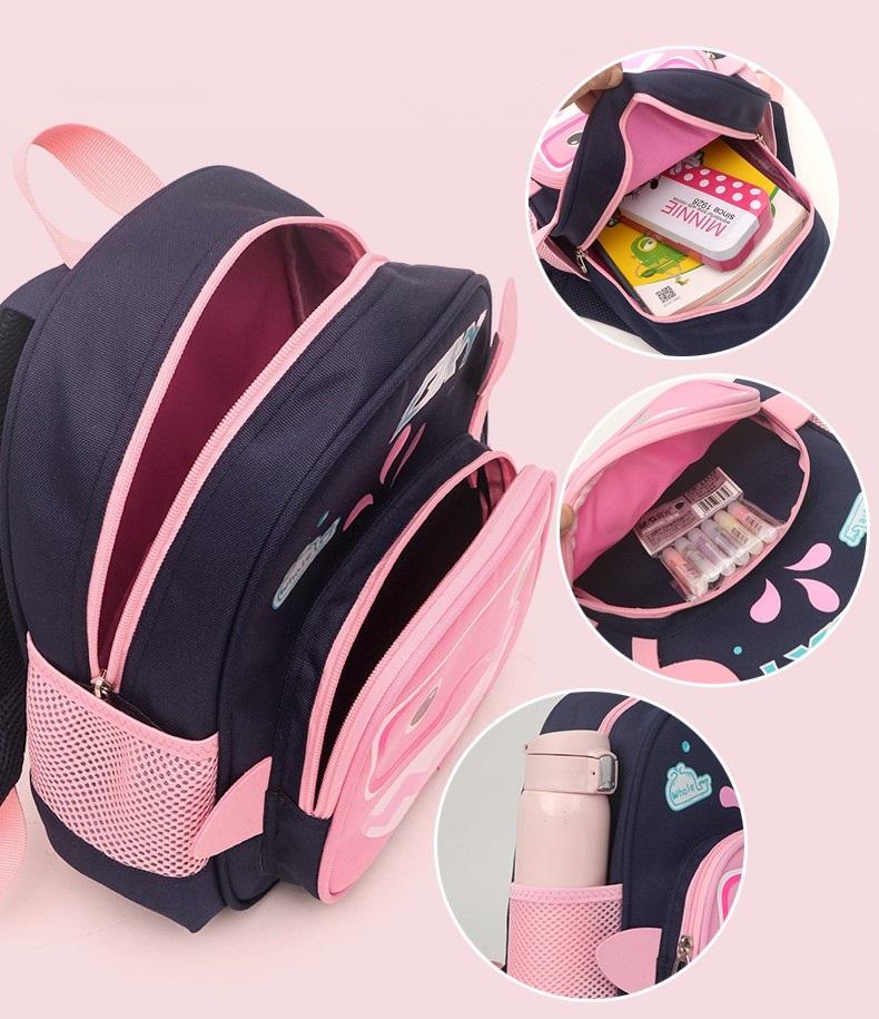 • Отделения: Вместительное основное отделение для книг, игрушек и других необходимых вещей, а также дополнительные карманы для мелочей.