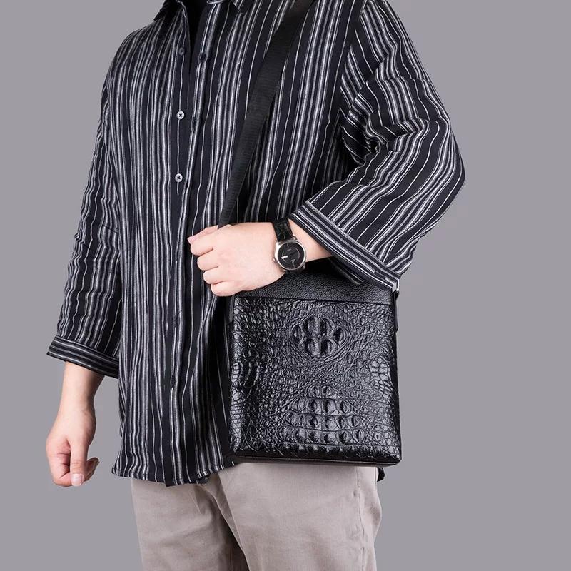 Классическая модель сумки вместит все необходимое в повседневной носке: документы, телефон, ключи, ручку, кредитные и дебетовые карты и т.д. Модель унисекс- подойдет как для мужчин так и для женщин. В основном отделении есть дополнительный карман на молнии, а также два кармана на молнии по бокам: спереди и сзади. Плечевой ремень регулируется по длинне. Модель прекрасно смотрится как небольшая сумка барсетка или слинг. Благодаря черному цвету сумочка отлично подойдет к любой одежде.