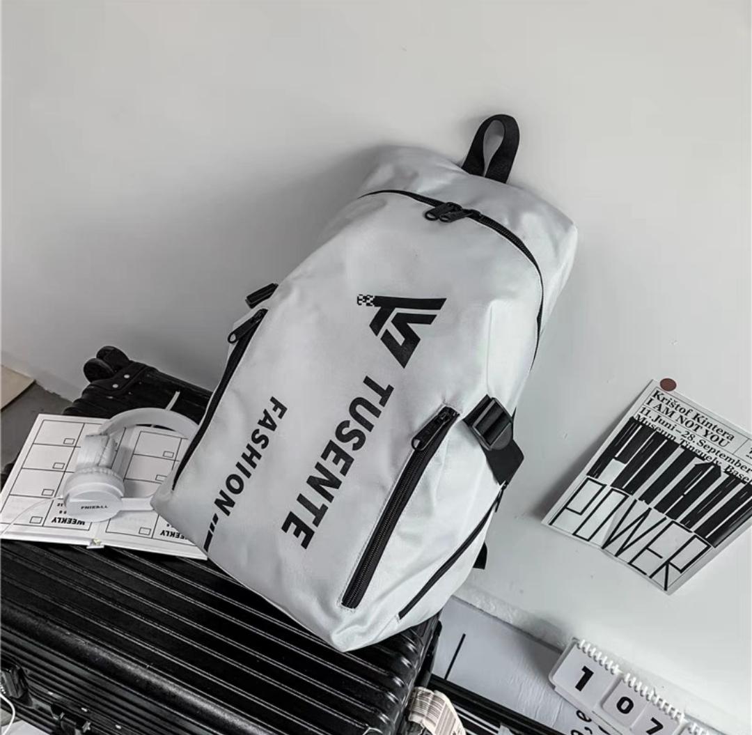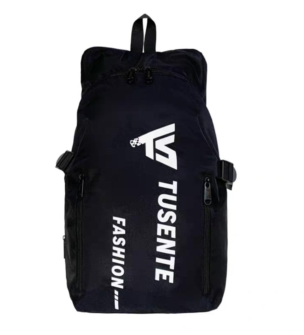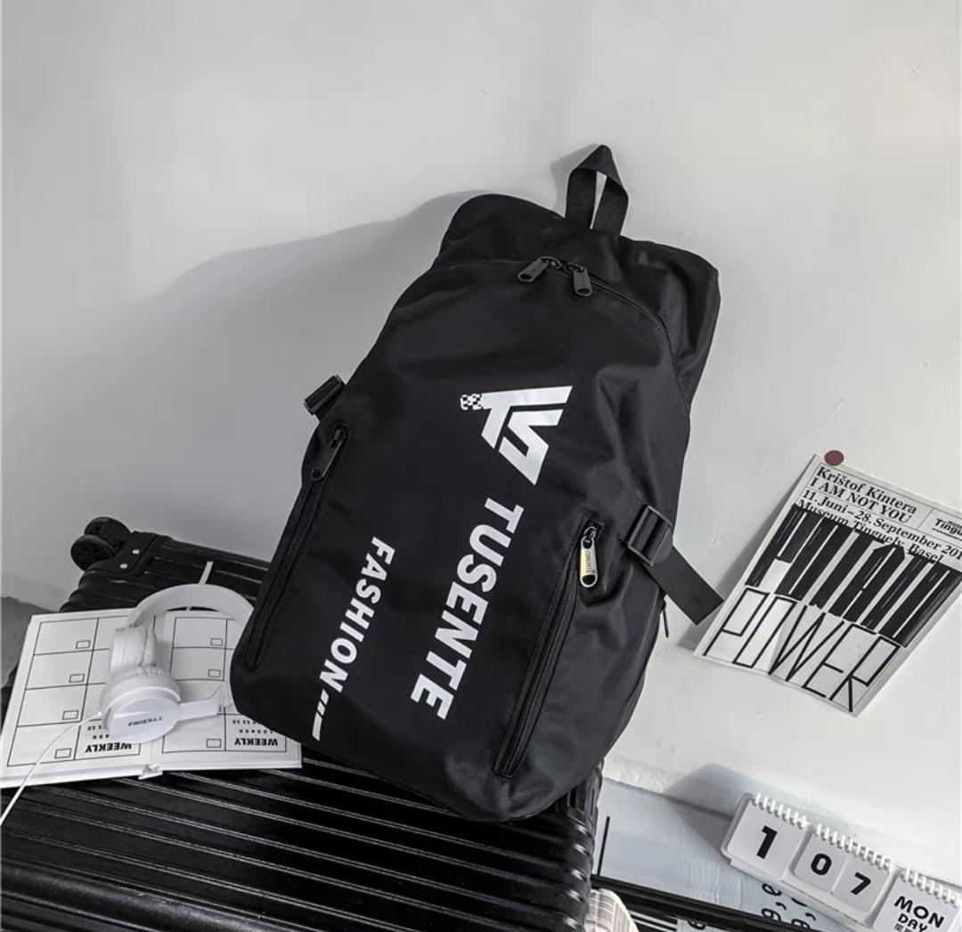 Дизайн: На передней части сумки рюкзака нанесены бренд "TUSENTE" и слово "FASHION" белыми буквами. Надпись сопровождается логотипом в виде стилизованной буквы "T" с небольшим графическим элементом.