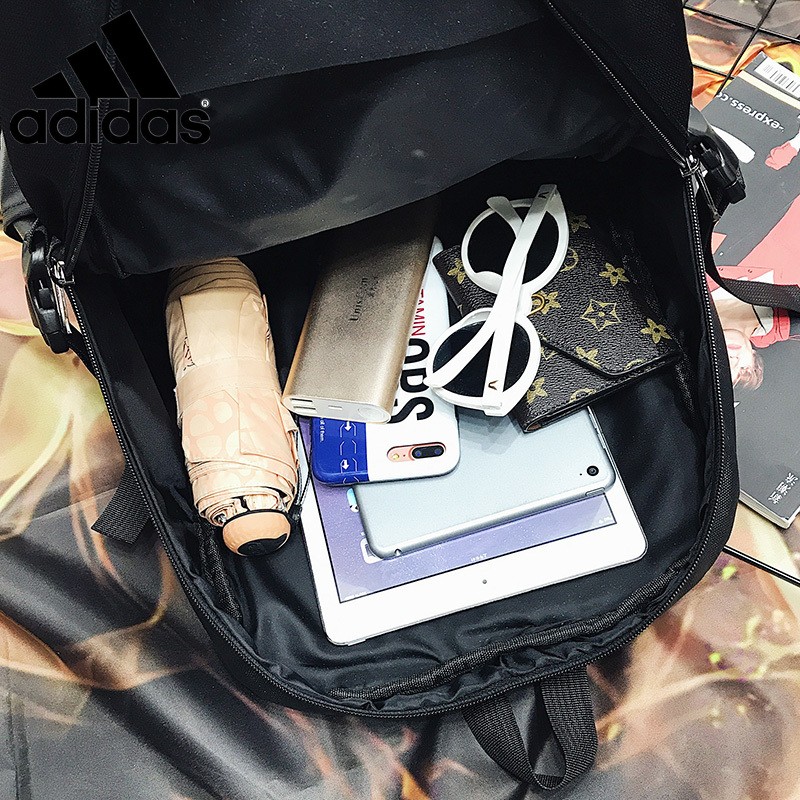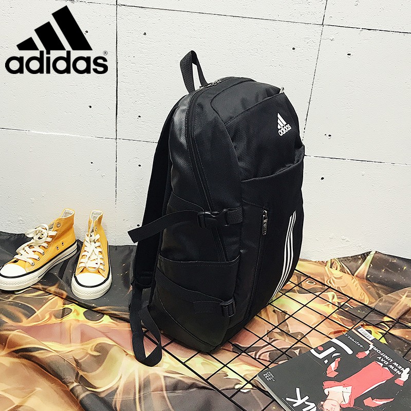 Дизайн: Классический дизайн с тремя белыми полосками и логотипом Adidas на переднем кармане. Логотип также располагается в верхнем левом углу рюкзака.