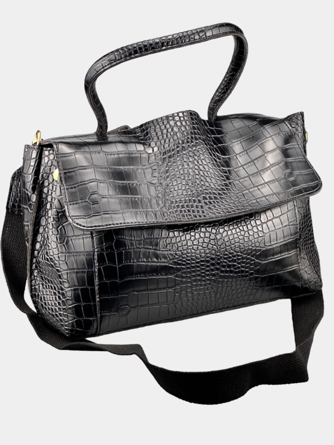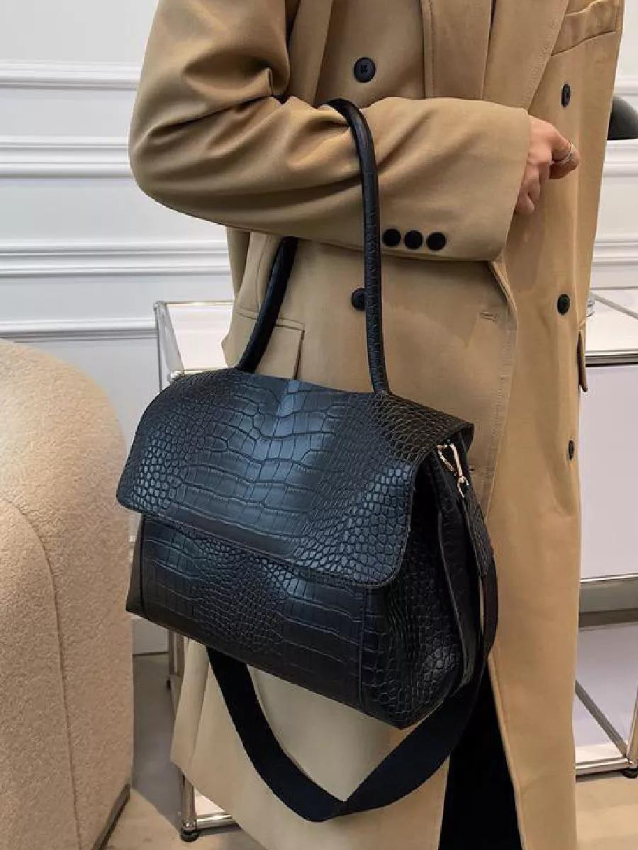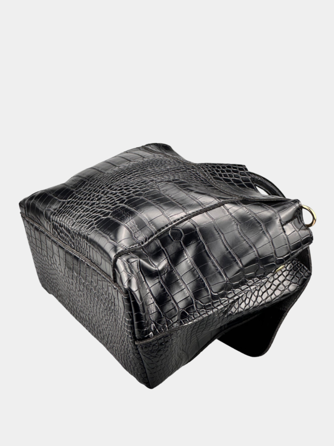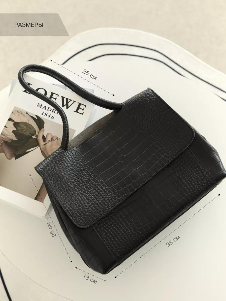 Стильная женская сумка из гладкой эко-кожи с фактурой под крокодила станет идеальным дополнением к вашему образу. Чёрный цвет, лаковая поверхность и эффектный тиснёный узор делают её универсальной — подойдёт как для офиса, так и для прогулок по городу.