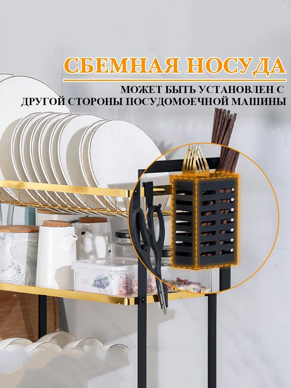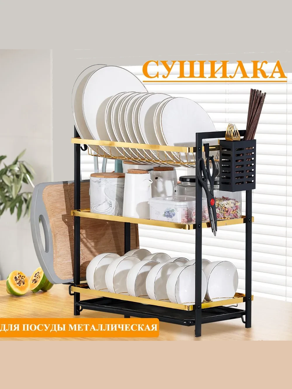 Металлическая сушилка для посуды с тройной системой хранения станет отличным решением для организации пространства на кухне. Размер: 44×24×50 см.