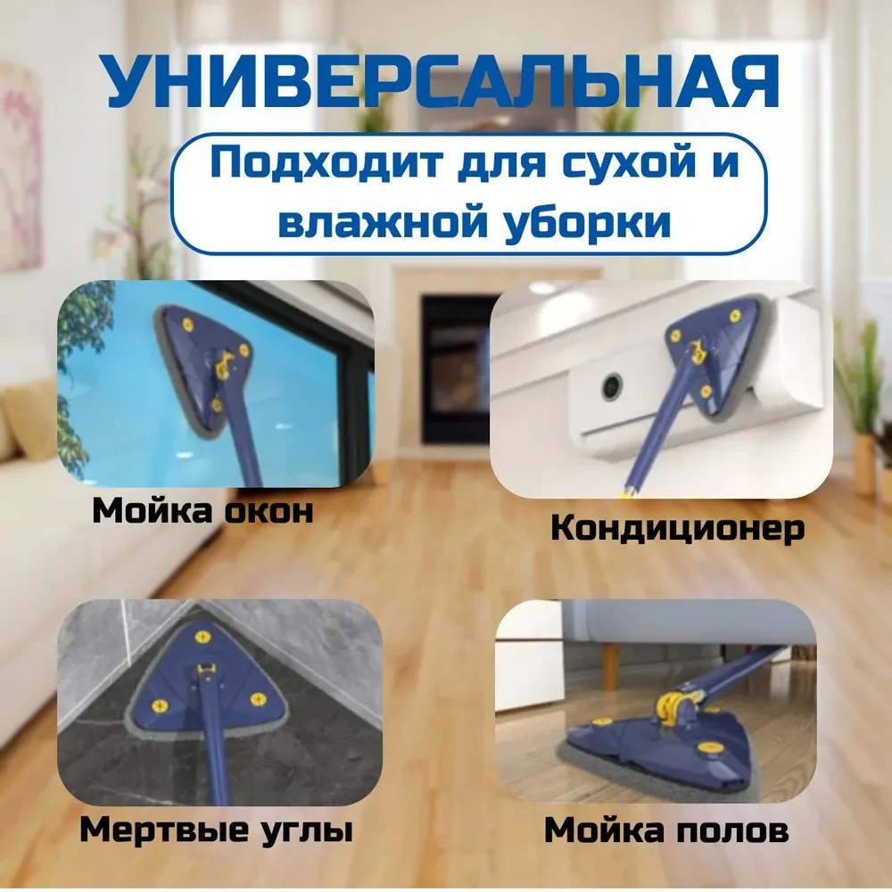 - Мобильность и универсальность - вот что приносит вам 360-градусный поворот этой удивительной швабры для мытья. Вы сможете легко достать даже самые сложнодоступные уголки, а форма платформы нежно бережет все углы вашей мебели, исключая любую возможность поцарапать их.