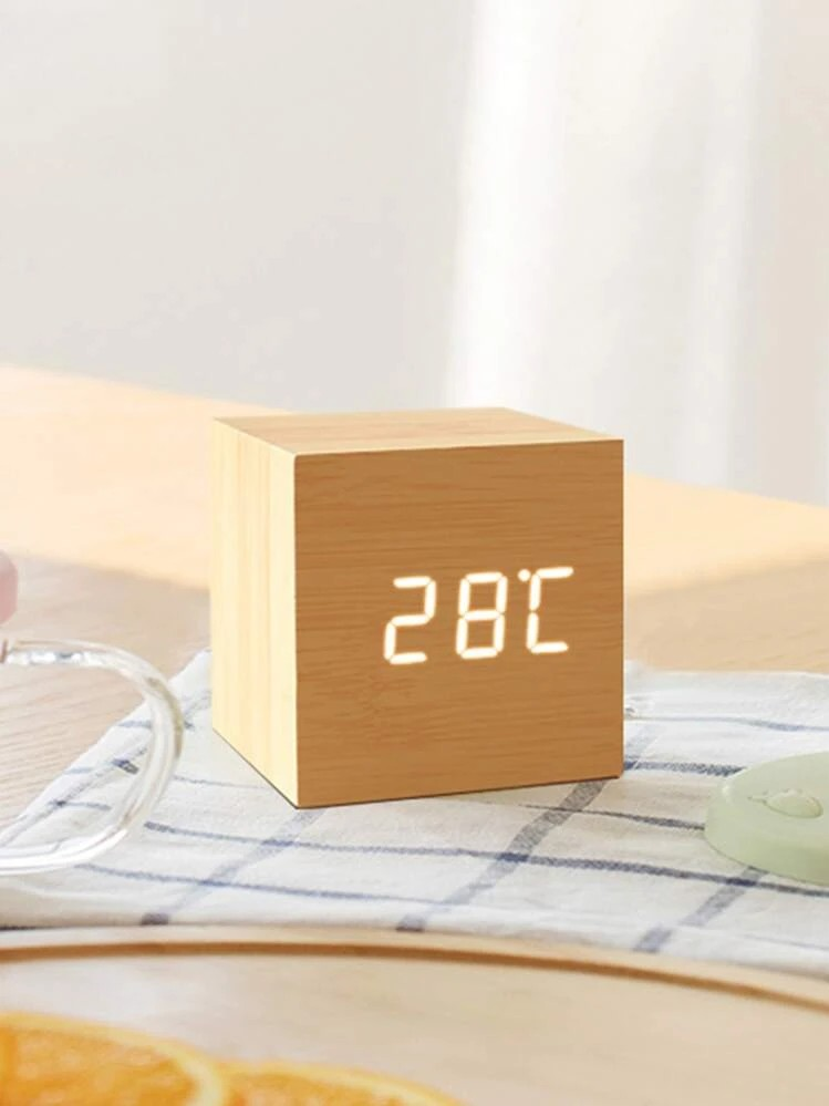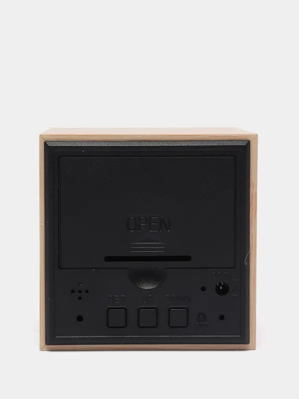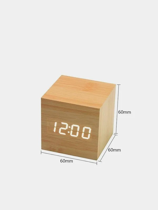 Когда прибор выключен, вы даже не догадаетесь, что это часы. Простой деревянный кубик размером 62х62х26 мм. Но стоит их включить, и сквозь дерево начинают ярко светить светодиоды, притягивая к себе внимание. Это одновременно и часы, и будильник, и градусник. Стильный предмет интерьера и оригинальный подарок. Отображение времени в формате 12/24, температурный датчик.