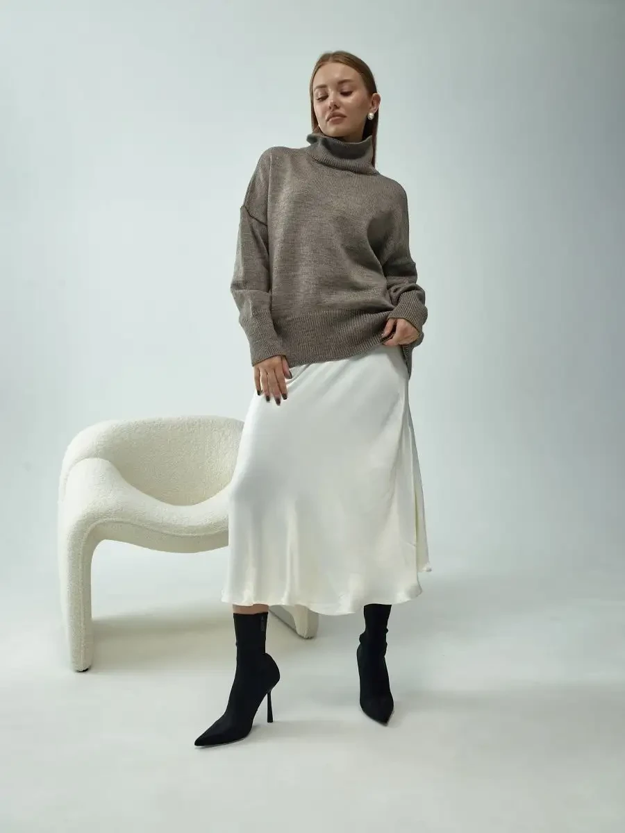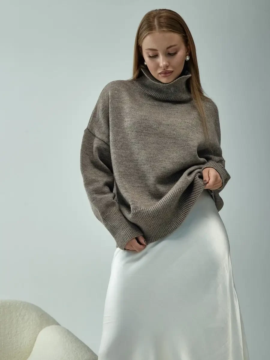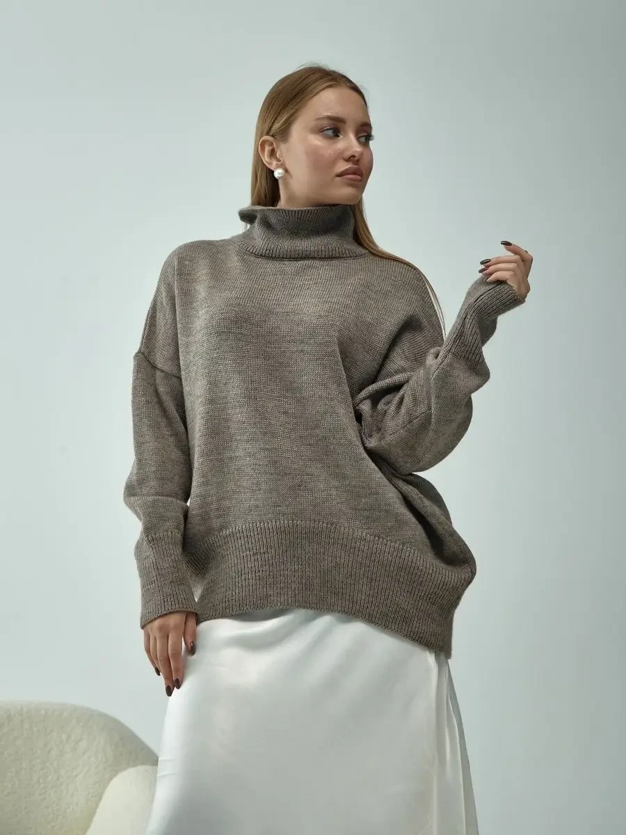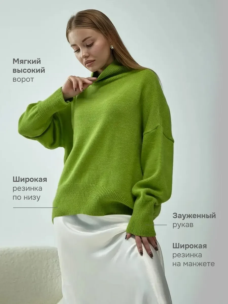 Очаровательная мягкая вязаная кофта в стиле оверсайз - прекрасный выбор для создания модного и современного образа! Этот трикотажный свитер представляет собой истинное воплощение комфорта и стиля, которое не оставит равнодушными ни девочек, ни женщин. Базовый джемпер выполнен из качественной шерсти с использованием крупной вязки, что придает ей уникальную текстуру и добавляет изысканности в образ. Благодаря натуральному материалу, школьный лонгслив с горлом очень приятный к телу. Крой oversize делает утепленную вещь идеальной для девушек всех размеров. Ее свободный и удлиненный силуэт позволяет скрыть все недостатки фигуры, придавая одновременно очарование и грацию. Большая объемная горловина и длинные спущенные рукава делают однотонную кофточку теплой и уютной. Отлично подойдет для прохладных осенних и холодных зимних дней. Наш классический свитшот со стойкой воротник станет хорошим вариантом для школы, учебы и офиса. Еще лучше водолазка лапша для подростков будет смотреться с юбкой для вечернего выхода или праздничного мероприятия, а также на фотосессию. Сочетая с джинсами, можно надеть для повседневных прогулок. Винтажный свитер очень удобный и понравится всем, кто ценит необычный стиль в одежде. Светлый молодежный пуловер является продолжением последних тенденций моды, поэтому вы сможете носить ее не только в этом сезоне, но и в следующем. Наша коллекция 2024-2025 года кофт с воротом включает разнообразные расцветки. Просто выберите свой любимый оттенок и добавьте яркости в свою жизнь! Будьте неотразимы вместе с нами!