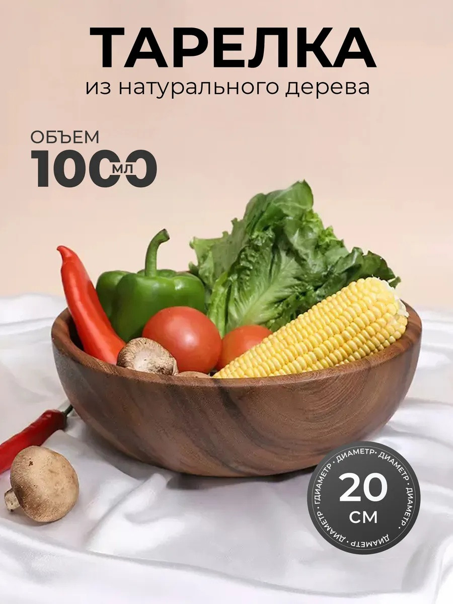 древесины акации, это безопасный и экологически чистый материал. Блюдо идеально отполированно, абсолютно гладкое и очень легкое. Чаша имеет утолщенные стенки 5 мм и дно, устойчива к опрокидыванию.