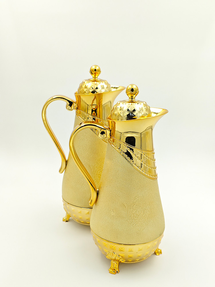 Набор из двух элегантных термочайников с золотистым покрытием, которые прекрасно сохраняют температуру напитков. Идеальный выбор для дома, офиса или подарка.