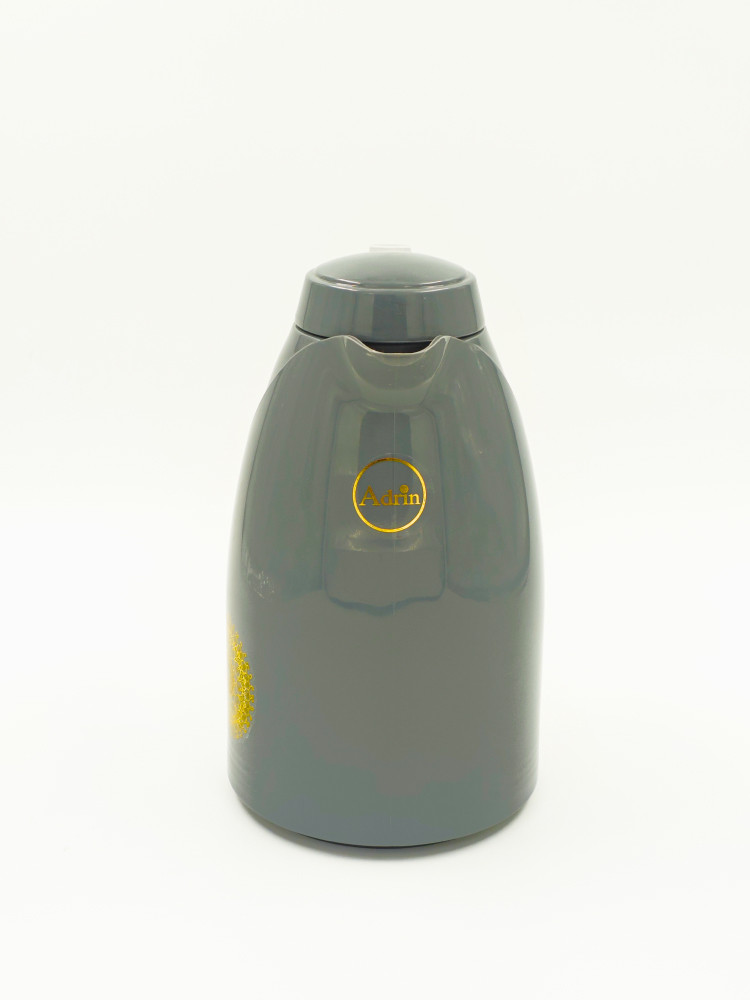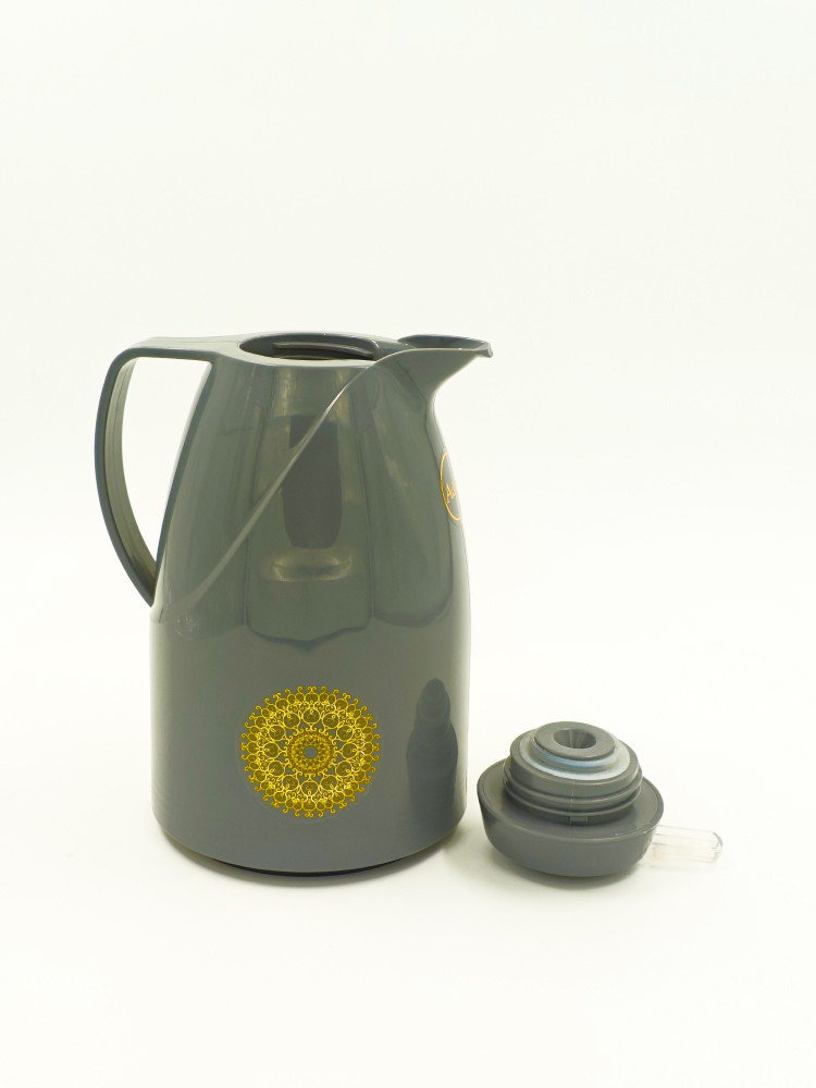 Элегантный термос-кувшин в стильном темно-сером цвете с изысканным золотым узором – идеальное решение для поддержания температуры напитков дома, в офисе или на природе.