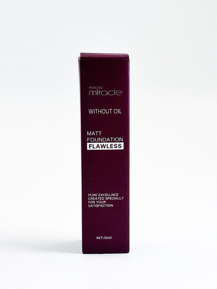 Матирующий тональный крем Nerciso Miracle Flawless выравнивает тон кожи и создаёт стойкое покрытие с матовым финишем. Имеет лёгкую текстуру, не содержит масел, подходит для жирной и комбинированной кожи. Выпускается во флаконе с дозатором.