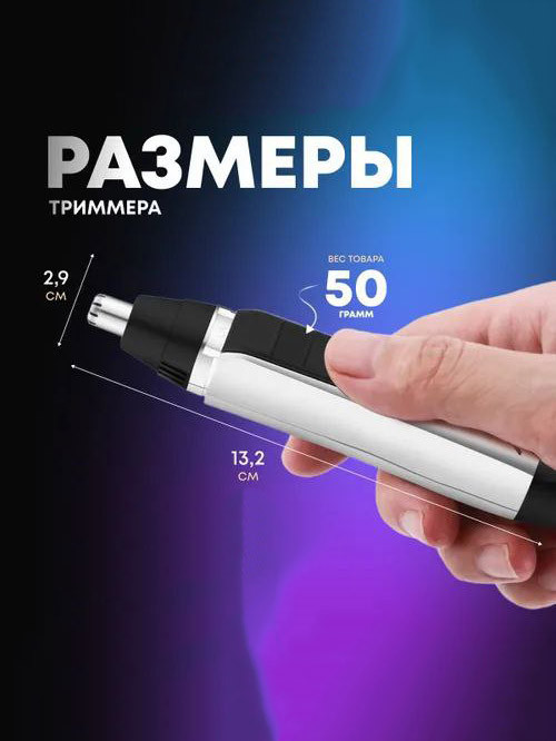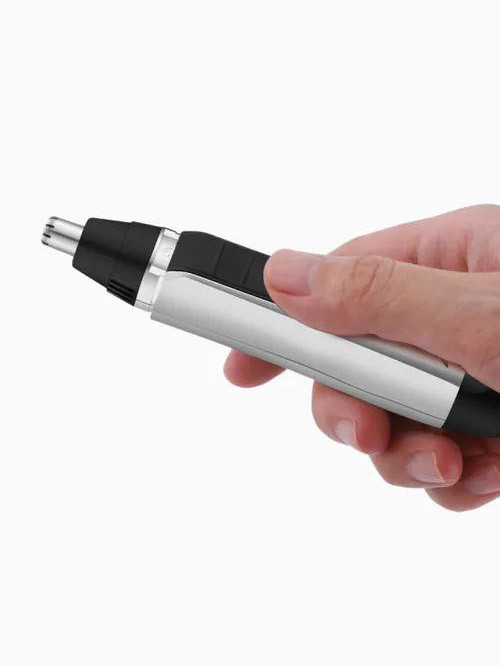 Компактный триммер с корпусом под металл — удобное устройство для ухода за волосками в носу и ушах. Оснащён острым лезвием из нержавеющей стали, безопасным для кожи. Работает от батарейки, легко помещается в дорожную косметичку или сумку.