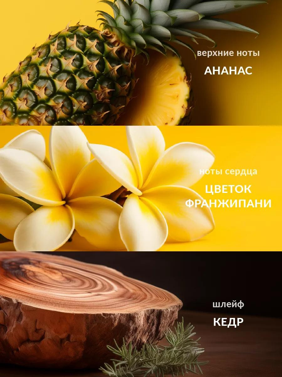 Вдохни горячий воздух Рио. Энергичная нота ананаса, пикантный цветок франжипани и обжигающий кедровый аккорд заряжают тебя атмосферой вечного праздника. ТИП АРОМАТА: цветочно-фруктовый НОТЫ: • ананас • цветок франжипани • кедр