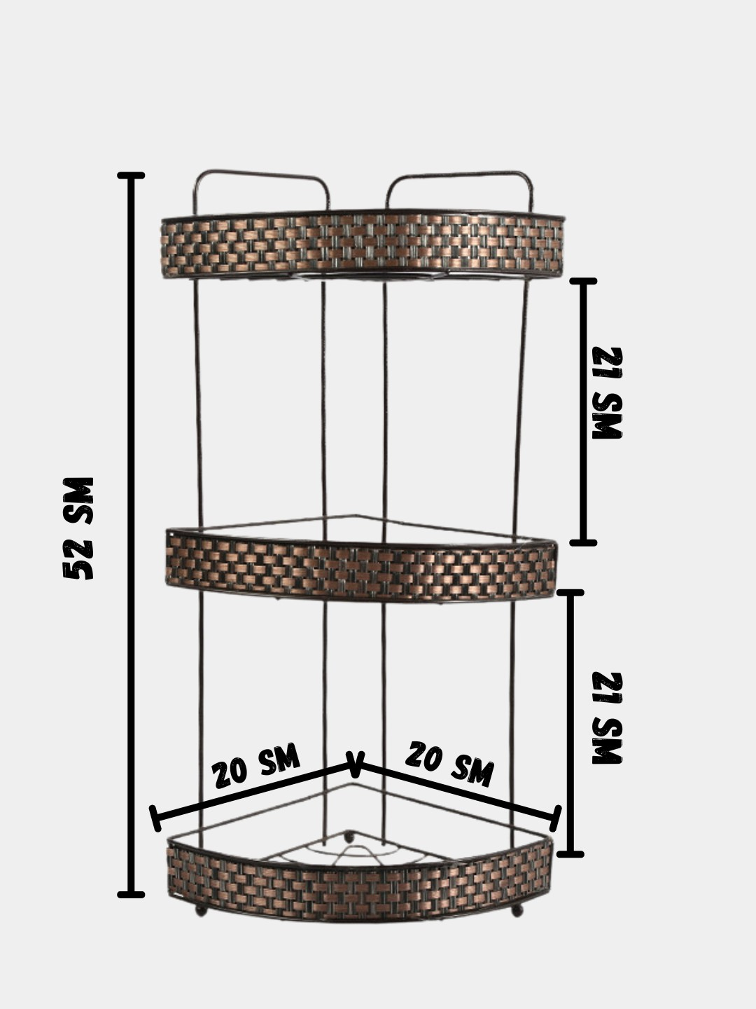 Полка для ванной настенная угловая трехъярусная - незаменимый атрибут для комфорта и удобства. Этажерка 3 яруса станет удобной как для небольшой по площади, так и для просторной ванной комнаты. Достаточно вместительная не прямая универсальная полочка для хранения в ванной на присосках липучках, чтобы разместить любимые товары для ухода и красоты. А также цветы, гели для душа, шампуни. Бальзамы, маски для волос, банные принадлежности и вещи. На полку 3х ярусную в ванную можно поставить туалетную бумагу, бумажные полотенца. Салфетки для уборки дома в туалете. Отлично подойдет в любой интерьер душевой квартиры, загородного дома. А также дачи для классического, стиля лофт, хайтек или ретро. Прямые бортики защищают от падений предметов с высоты. Безопасные закругленные углы стеллажа обеспечивают комфортное использование взрослыми, подростками или детьми. Многофункциональный навесной уголок для ванны идеально подойдет для многих типов поверхностей: мрамор, стекло, сталь, плитка или дерево. Расстояние между полками позволяют ставить высокие бутылки уходовой косметики. Сетчатое дно позволяет воде и грязи не скапливаться. Удобно протирать тряпочкой и ухаживать за изделием.