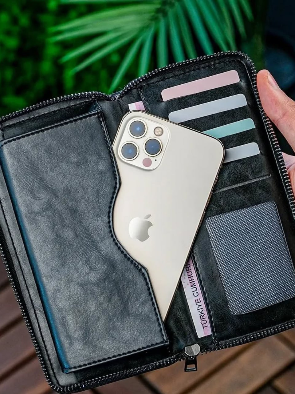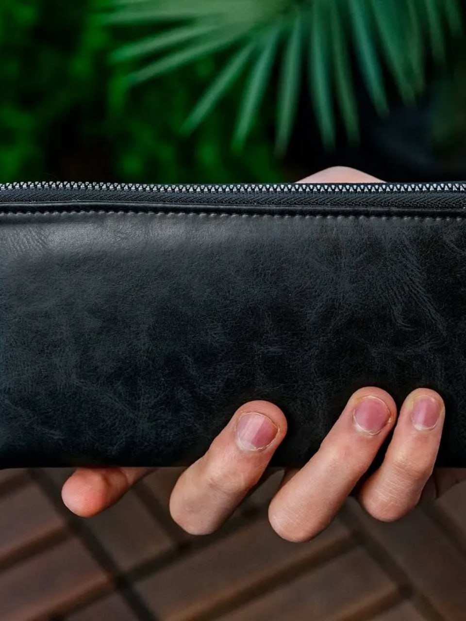 Модель разработана в универсальном дизайне, подходящем как для мужчин, так и для женщин. Внутри предусмотрены удобные отделения для купюр, банковских карт, телефона, документов и других мелочей. Компактный размер позволяет использовать его как самостоятельный аксессуар или носить внутри сумки или рюкзака.