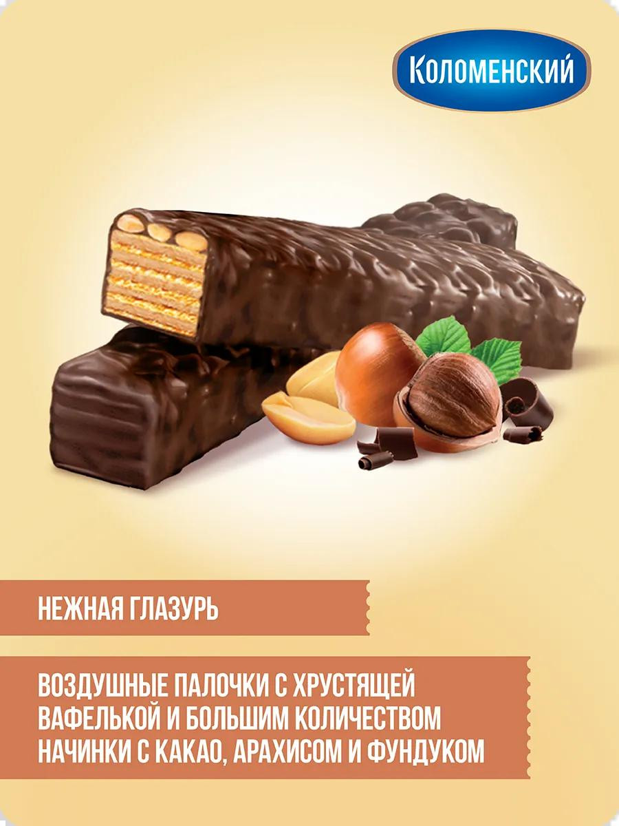 Вафли “Коломенские” выпечены по уникальной технологии, делающей их нежными и хрустящими, с особенным карамельным вкусом вафельного листа. При изготовлении вафель мы не используем искусственные красители, консерванты, усилители вкуса, стабилизаторы и продукты ГМО.